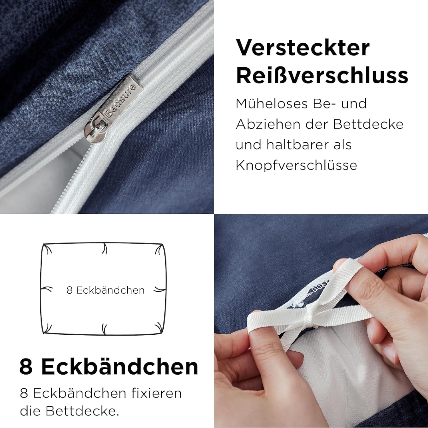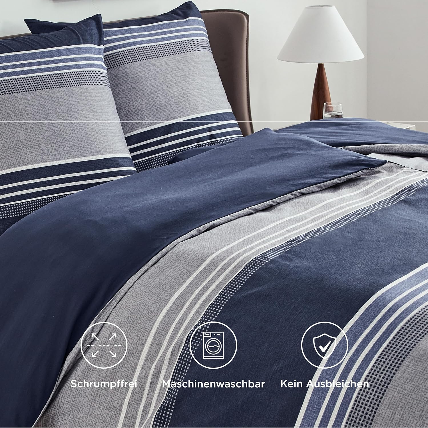 Комплект спално бельо Bedsure от 4 части, микрофибър, 135 x 200 см с 2 калъфки за възглавници, 80 x 80 см, калъф за завивка, син, раиран, с цип