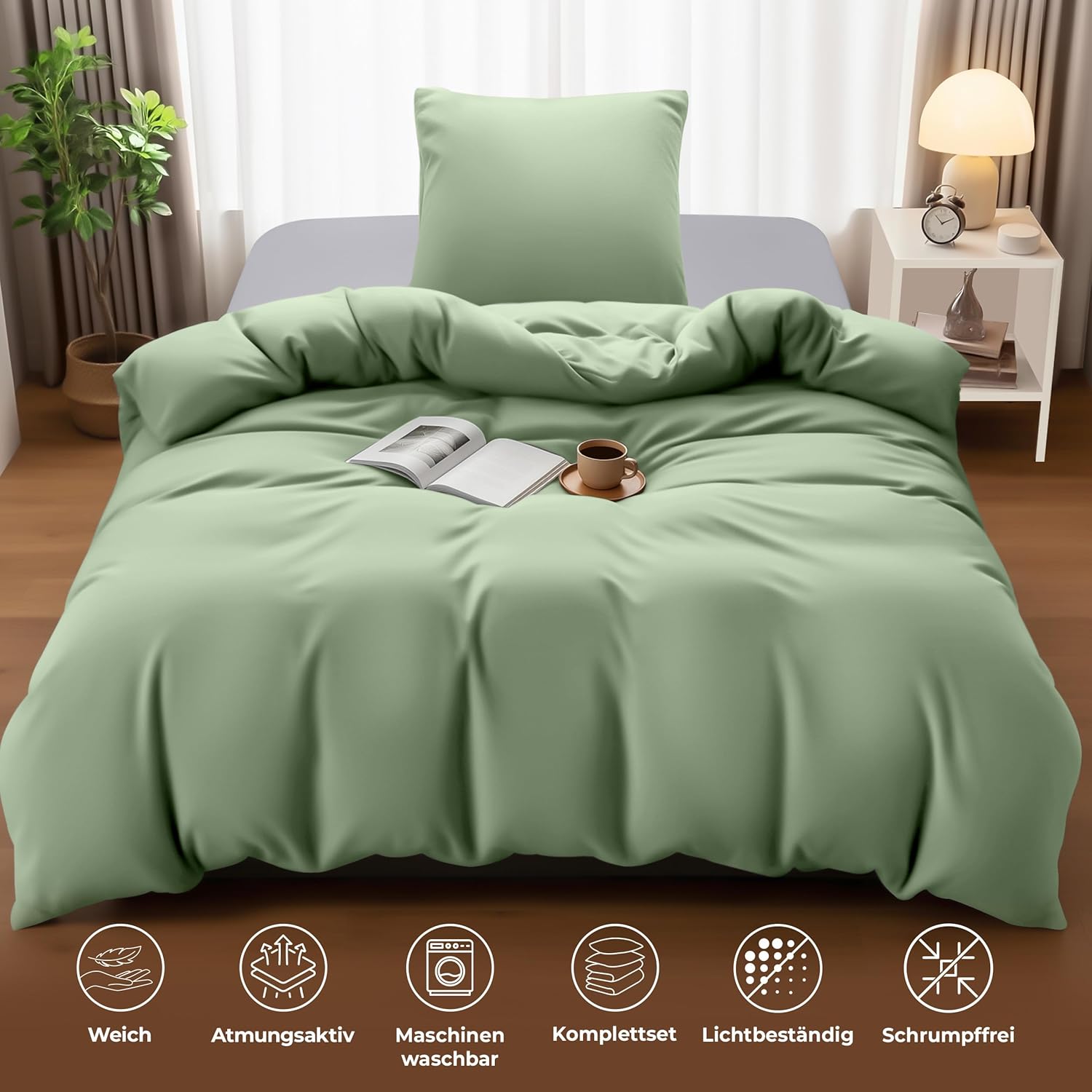 Внесете луксозно усещане в леглото си с този комплект завивки от микрофибър в едноцветен цвят. Този комплект завивки с едноцветна тъкан се предлага в два цвята - сив и бял - и ще се съчетае безпроблемно със съществуващия ви комплект спално бельо. Комплектът включва калъф за завивка със скрит цип и една калъфка за възглавница. Сега можете удобно да закупите основно спално бельо в един пакет, вместо да купувате всеки артикул поотделно. Често е по-евтино да купите завивка, отколкото всичко поотделно.