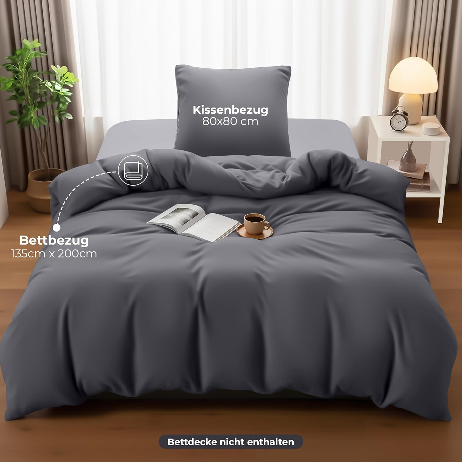 Внесете луксозно усещане в леглото си с този комплект завивки от микрофибър в едноцветен цвят. Този комплект завивки с едноцветна тъкан се предлага в два цвята - сив и бял - и ще се съчетае безпроблемно със съществуващия ви комплект спално бельо. Комплектът включва калъф за завивка със скрит цип и една калъфка за възглавница. Сега можете удобно да закупите основно спално бельо в един пакет, вместо да купувате всеки артикул поотделно. Често е по-евтино да купите завивка, отколкото всичко поотделно.