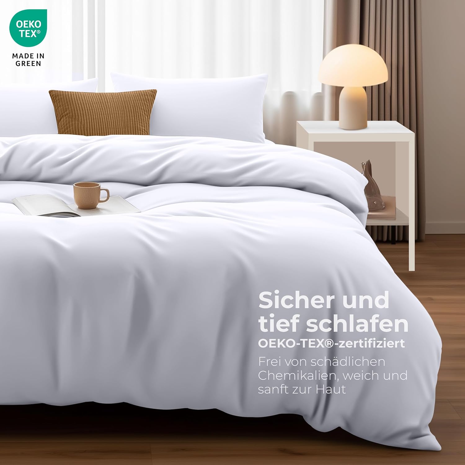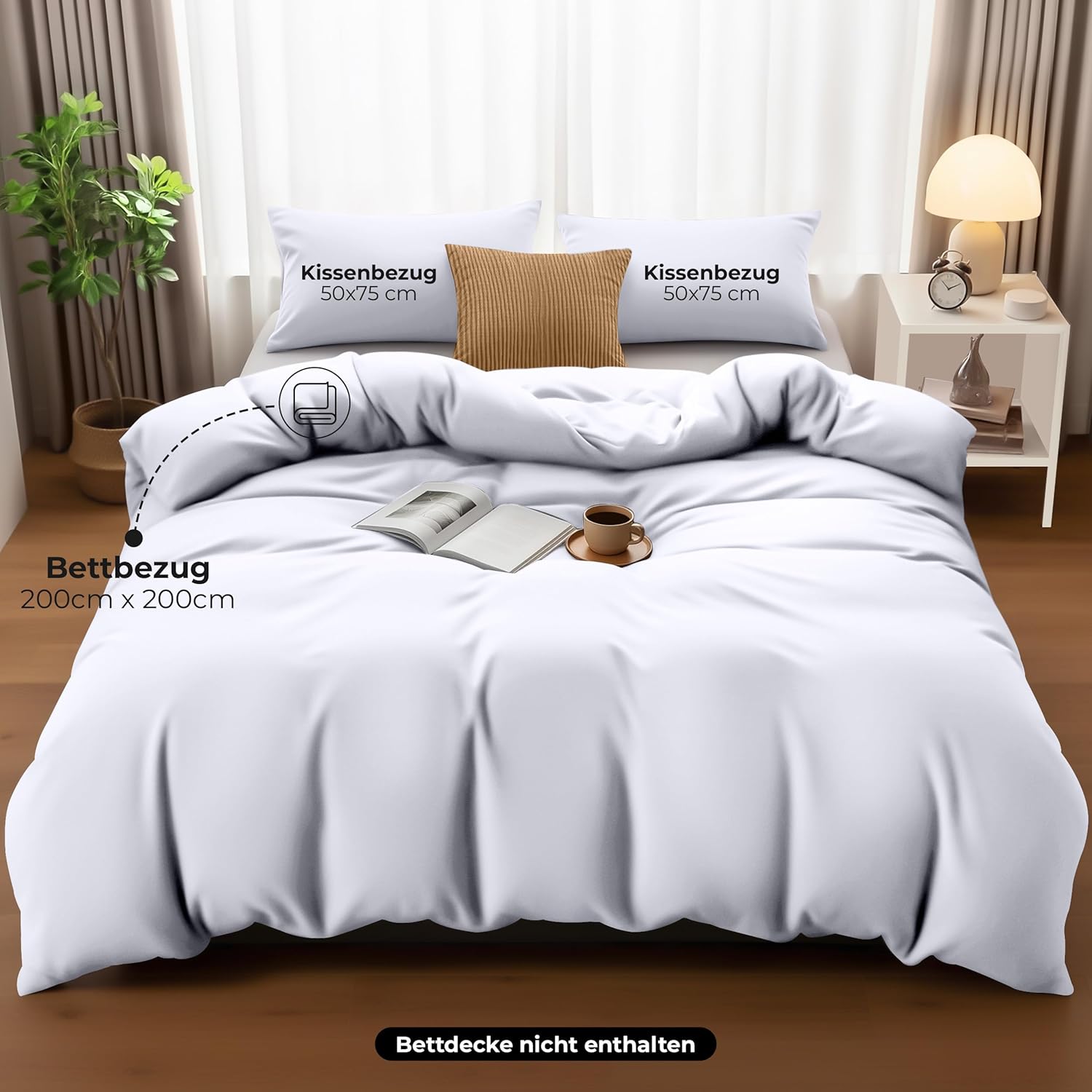 Внесете луксозно усещане в леглото си с този комплект завивки от микрофибър в едноцветен цвят. Този комплект завивки с едноцветна тъкан се предлага в два цвята - сив и бял - и ще се съчетае безпроблемно със съществуващия ви комплект спално бельо. Комплектът включва калъф за завивка със скрит цип и една калъфка за възглавница. Сега можете удобно да закупите основно спално бельо в един пакет, вместо да купувате всеки артикул поотделно. Често е по-евтино да купите завивка, отколкото всичко поотделно.