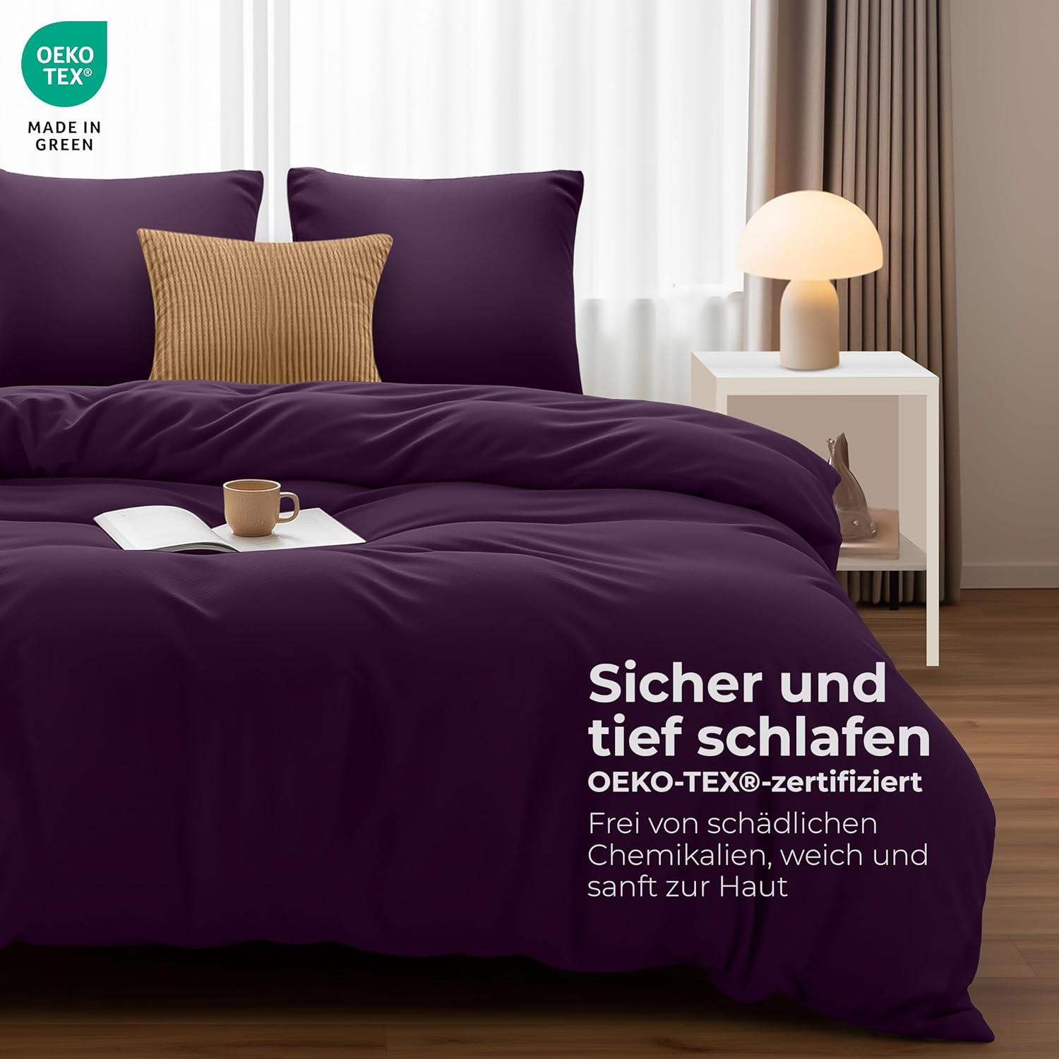 Нашият комплект завивки е изработен от здрава и издръжлива материя, която запазва яркостта и формата си, за да осигури перфектен външен вид на вашата спалня и комфортен сън. Плътната тъкан от микрофибър позволява на течностите да образуват капчици и да се задържат върху повърхността на плата за кратко време, вместо да попиват веднага. Това го прави много устойчив. Ако можете да почистите течността, преди да е проникнала в плата, ще бъде все едно нищо не е попаднало върху мебелите ви.