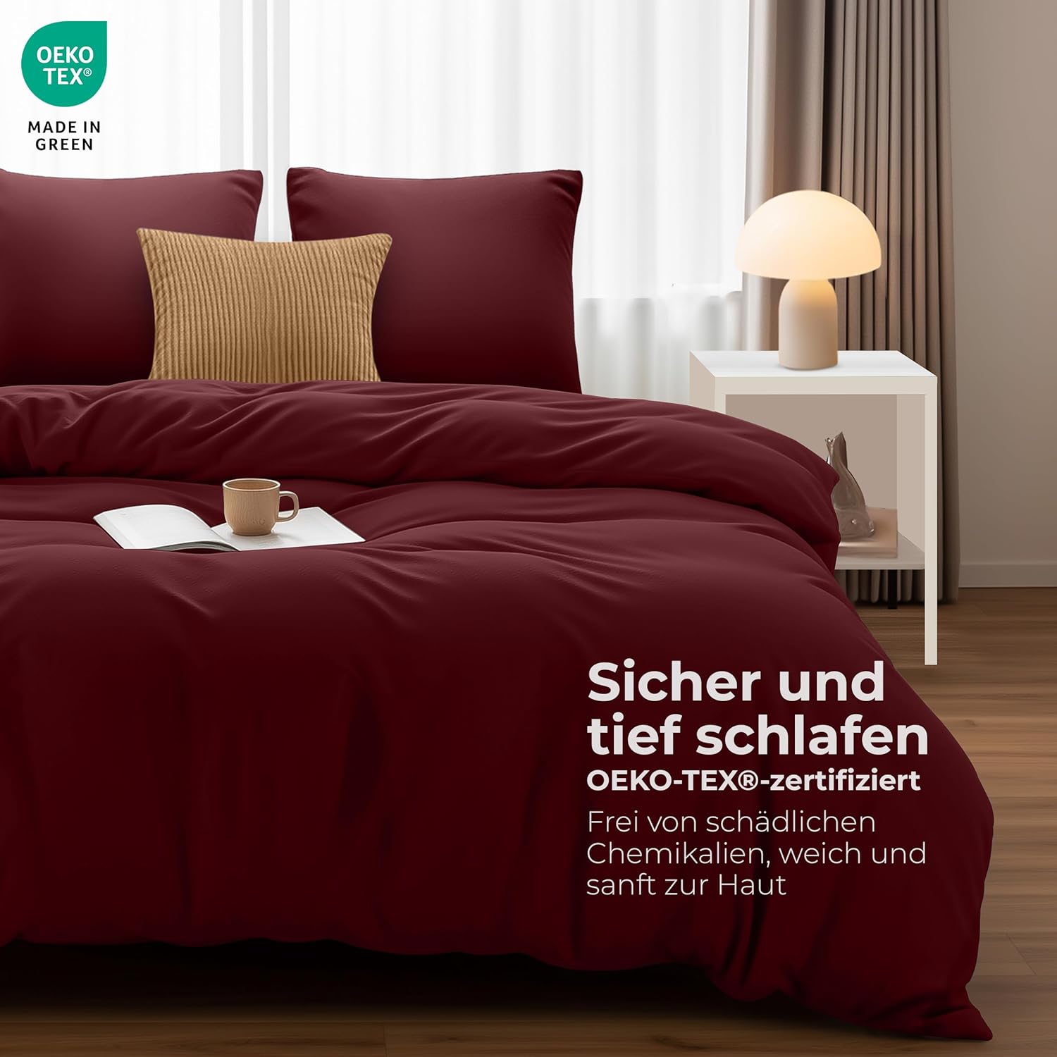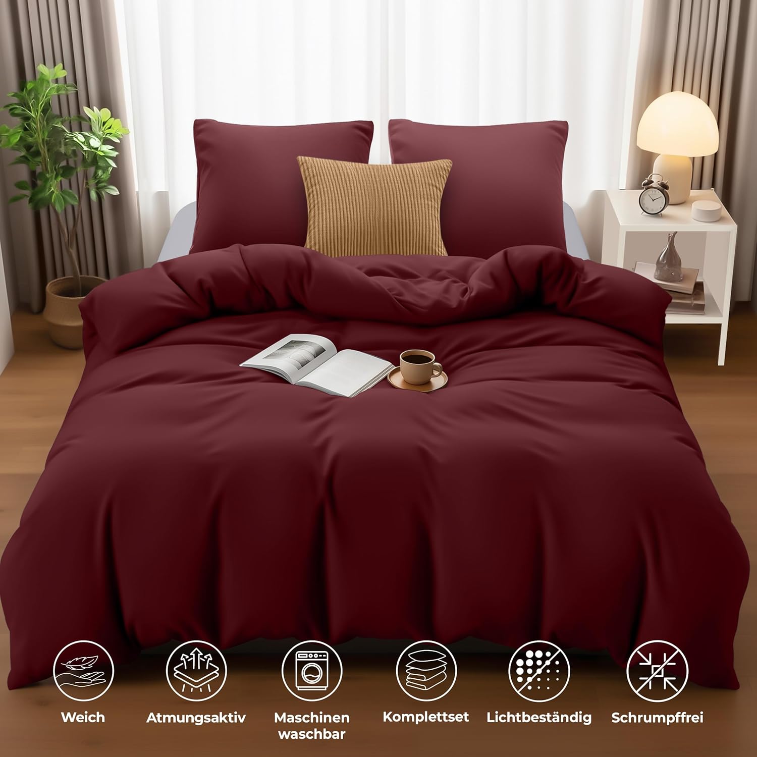 Нашият комплект завивки е изработен от здрава и издръжлива материя, която запазва яркостта и формата си, за да осигури перфектен външен вид на вашата спалня и комфортен сън. Плътната тъкан от микрофибър позволява на течностите да образуват капчици и да се задържат върху повърхността на плата за кратко време, вместо да попиват веднага. Това го прави много устойчив. Ако можете да почистите течността, преди да е проникнала в плата, ще бъде все едно нищо не е попаднало върху мебелите ви.