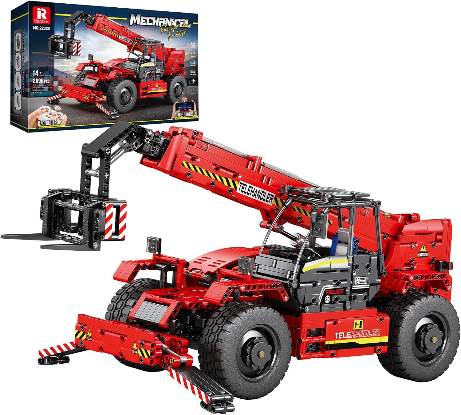 Комплект строителни блокове Reobrix с телескопичен мотокар и мотор, RC кран, механичен модел, трактор с дистанционно управление, играчка технически камион за възрастни, MOC играчка за строителство, идеи за деца момчета над 14 години