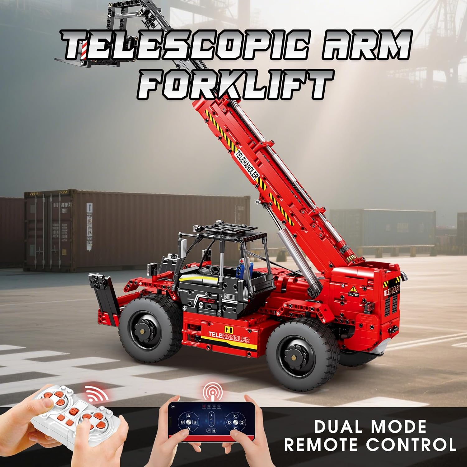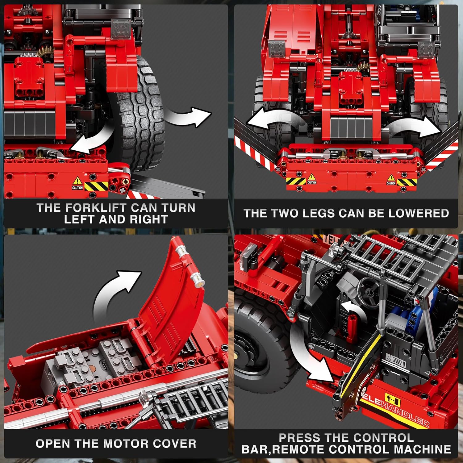 • Реалистичен комплект за телескопичен мотокар с дистанционно управление: Строителните блокове на телескопичния мотокар Reobrix пресъздават точно структурата на телескопичния мотокар, поддържат повдигането и прибирането на голямото рамо (±60° регулиране) и имат основни функции като кимане, повдигане и задействане. Задното задвижване с предно управление симулира реални работни сценарии и отговаря на изискванията за завладяване на технологичните ентусиасти. Размери на готовия продукт: 20,4 x 8,25 x 13,5 инча, 2096 части.