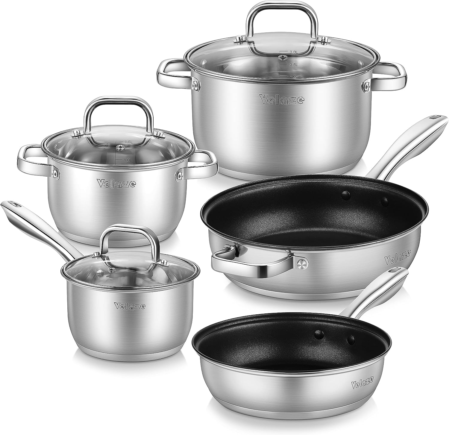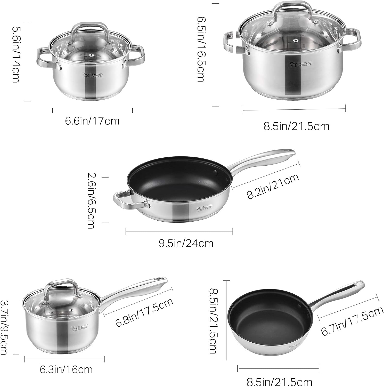Комплект съдове за готвене Velaze Eloria, Алуминиева технология за равномерно и бързо затопляне, Сребристи