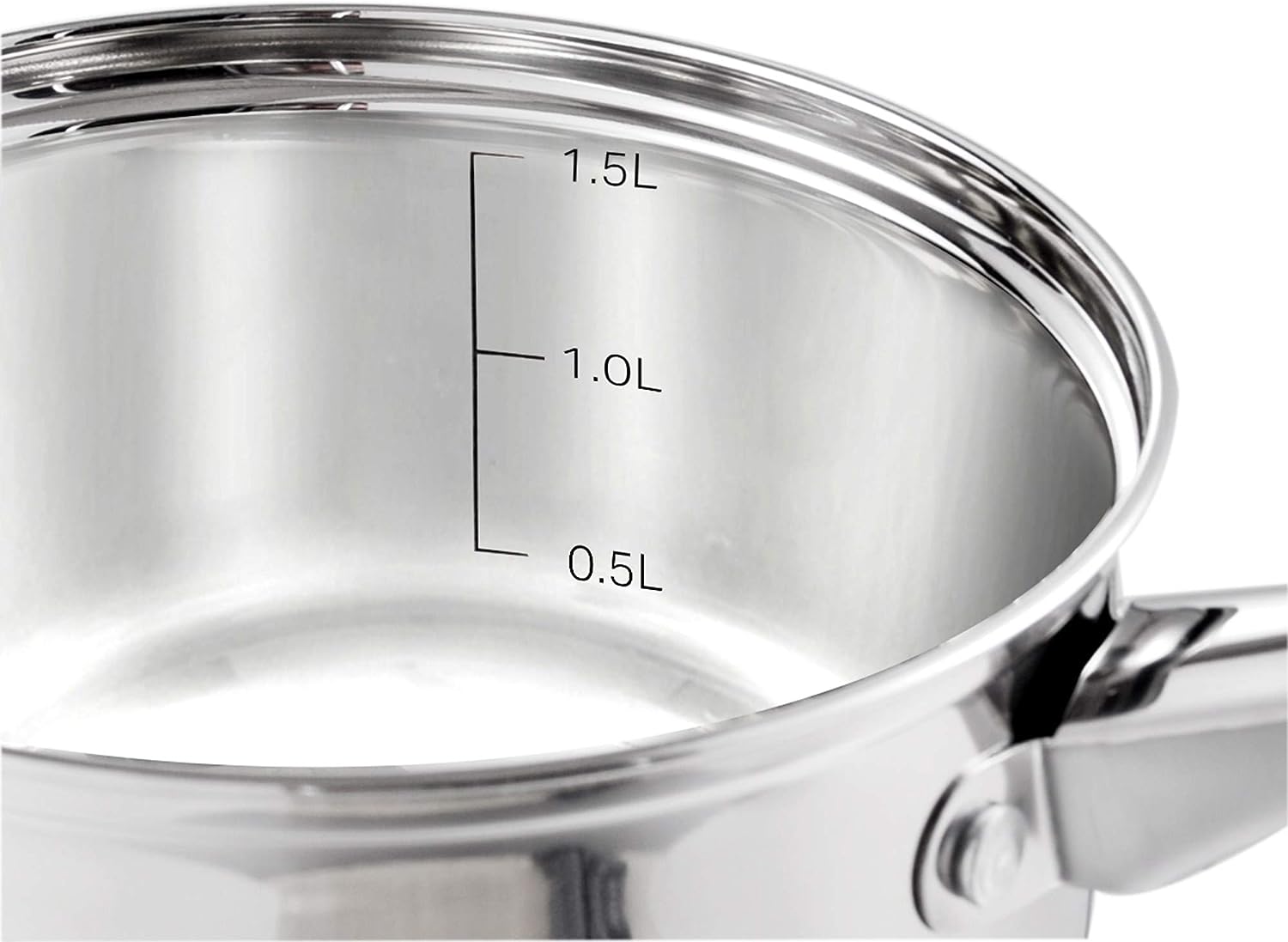 • Този висококачествен комплект тенджери от 8 части "Eloria" е изработен от здрава неръждаема стомана, полирана, устойчива на ръжда, лесна за почистване и подходяща за съдомиялна машина и подходяща за всички видове готварски печки, включително индукционни