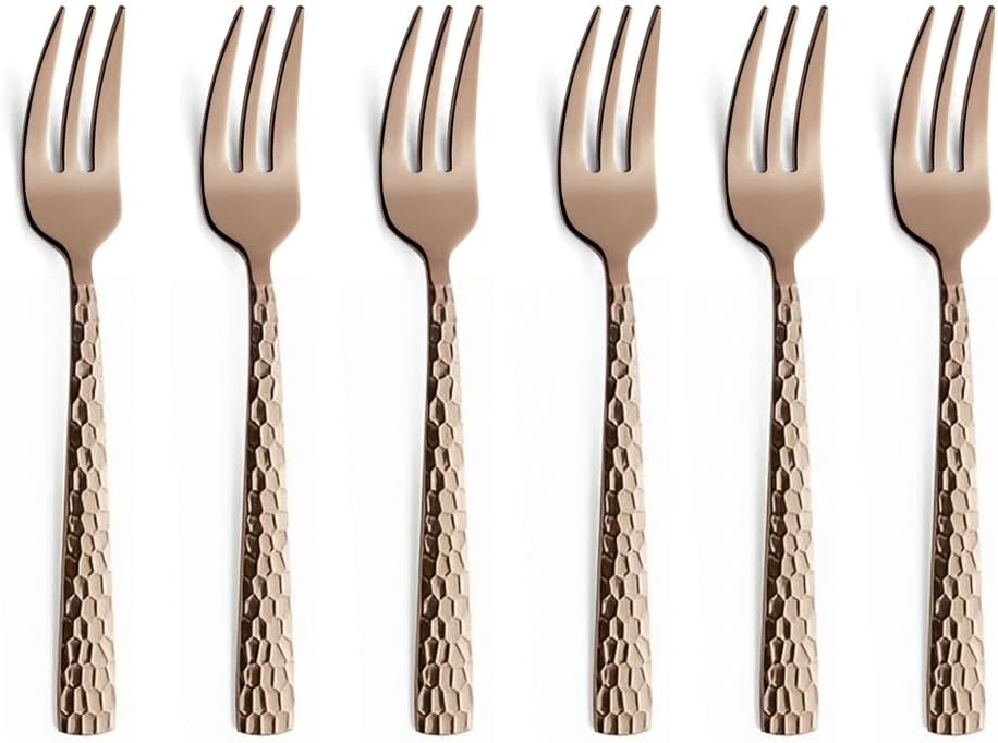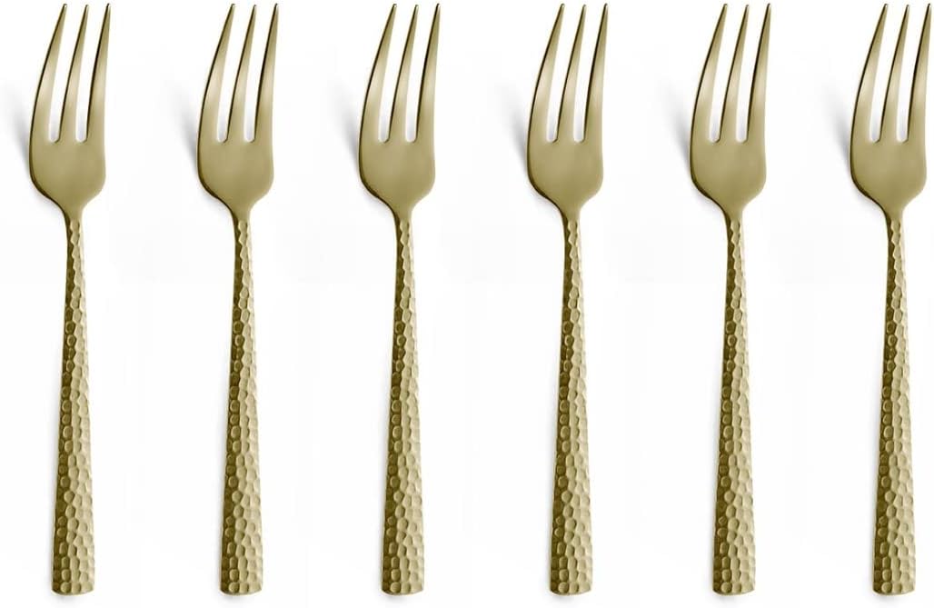 • Комплект вилици за торта, 6 части, състоящ се от 6 вилици за торта. Дължина: 15,6 см. Материал: неръждаема стомана 18/0. Финиш: полиран с висок гланц, PVD покритие, чукнат.