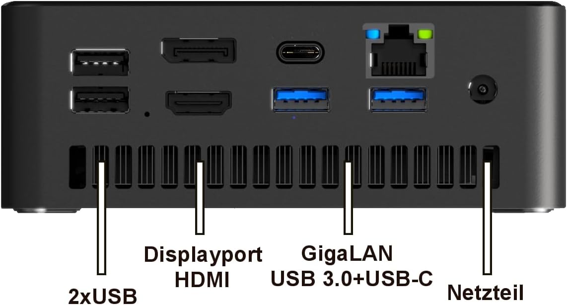 Конектори: VGA, 2x Displayport, 6x USB 3.0, 1x USB-C, 3x аудио, 1x Gigabit LAN