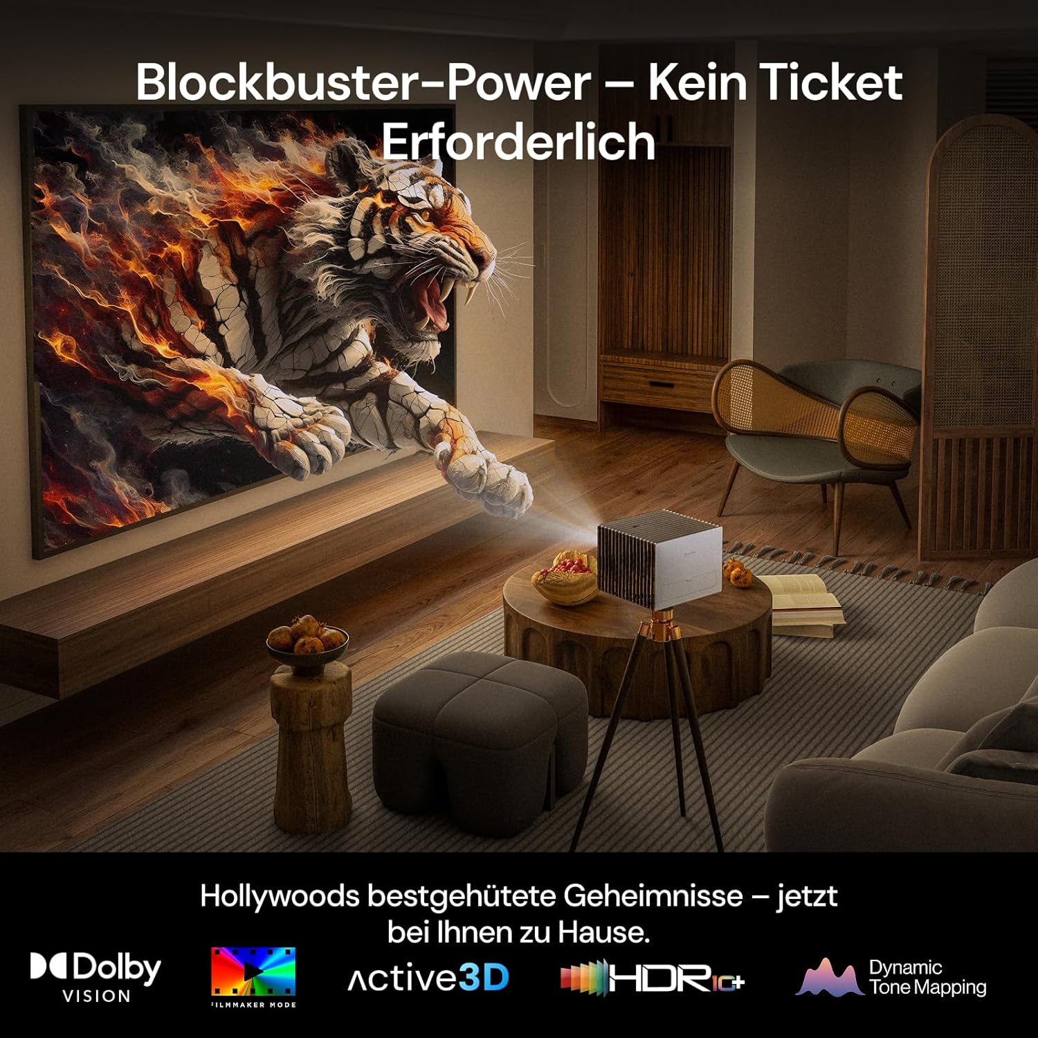 • 4K стрийминг, готов за бъдещето - Изживейте бъдещето на проекцията с най-съвременния чипсет Al-SoC MT9618, който е оборудван с 4GB RAM и 128GB ROM, осигурявайки значително по-висока производителност в сравнение с традиционните 2GB/32GB проектори. С подобрена памет и разширен капацитет за съхранение можете да се наслаждавате на безпроблемно многозадачност, по-бързо превключване между приложения и по-плавно 4K UHD стрийминг – без неудобството от забавяния. С тази технология, готова за бъдещето, вие сте постоянно подготвени за бъдещите изисквания.