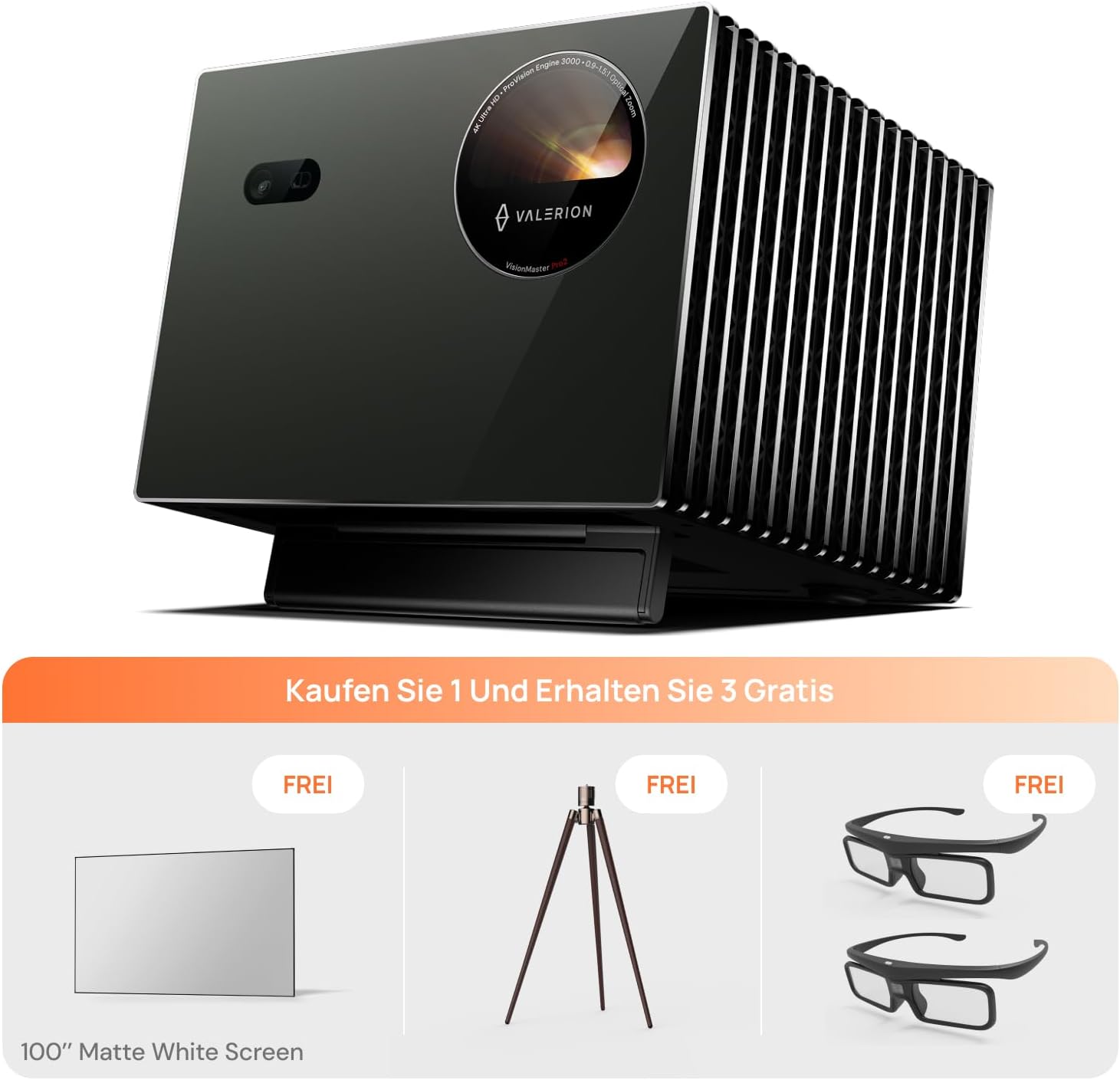 Комплект за домашно кино Valerion - Включва проектор Valerion Pro2 4k + 100" матово бял екран + статив от орех + 3D очила