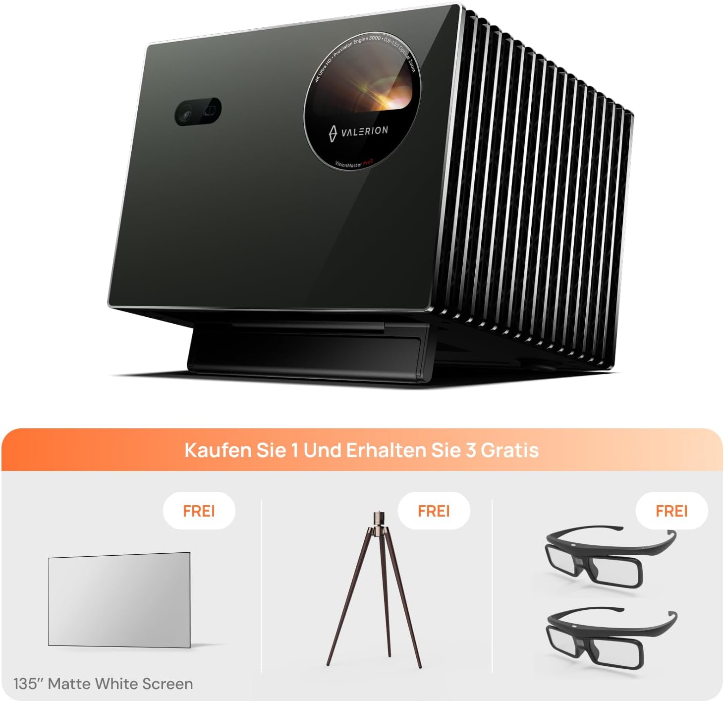 Комплект за домашно кино Valerion - Включва проектор Valerion Pro2 4K + 135" матово бял екран + статив от орех + 3D очила