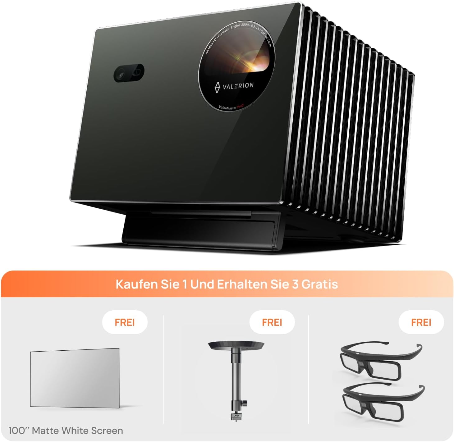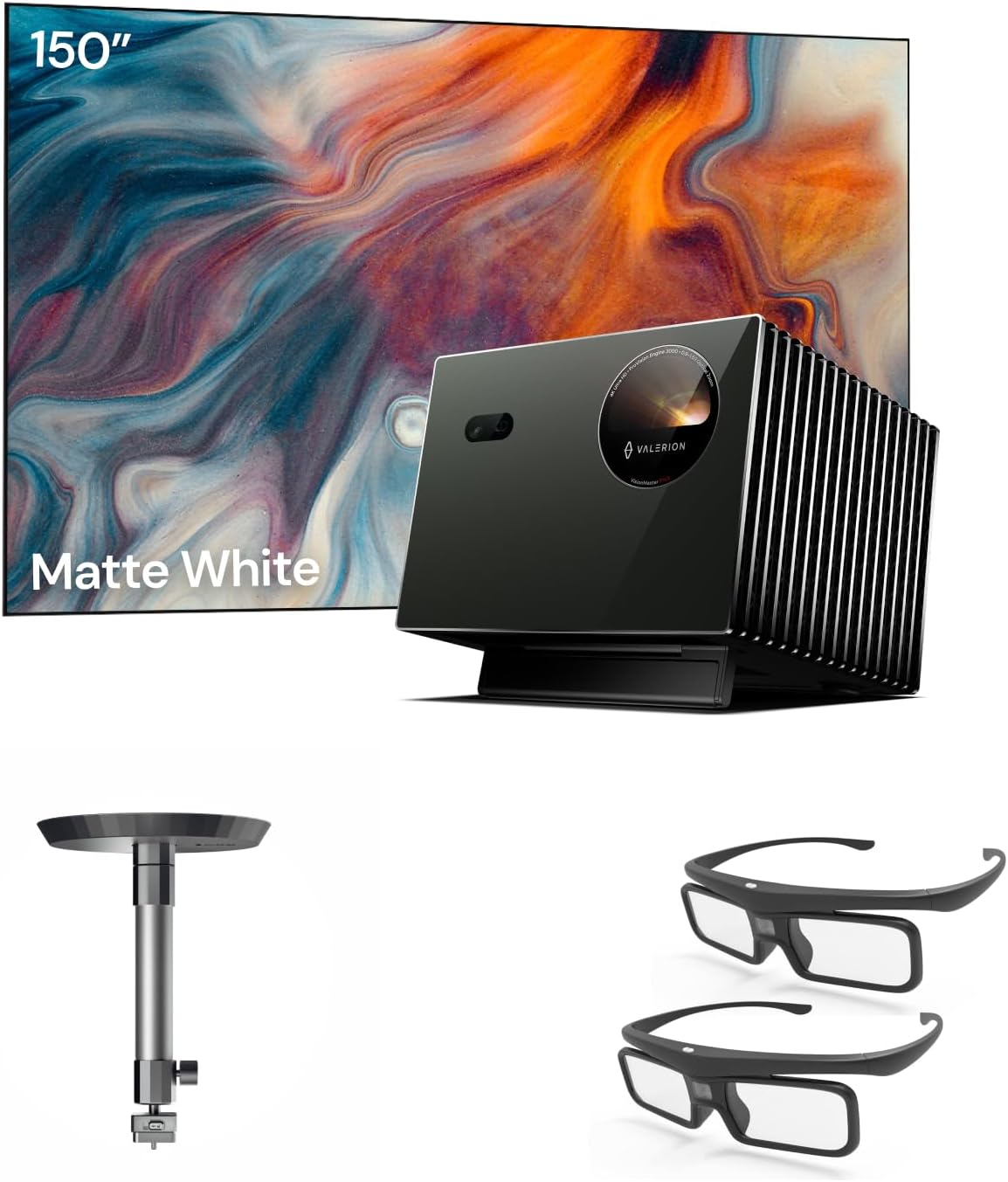 Комплект за домашно кино Valerion - Включва Valerion Pro2 4K проектор + 100" матово бял екран + стенен монтаж + 3D очила