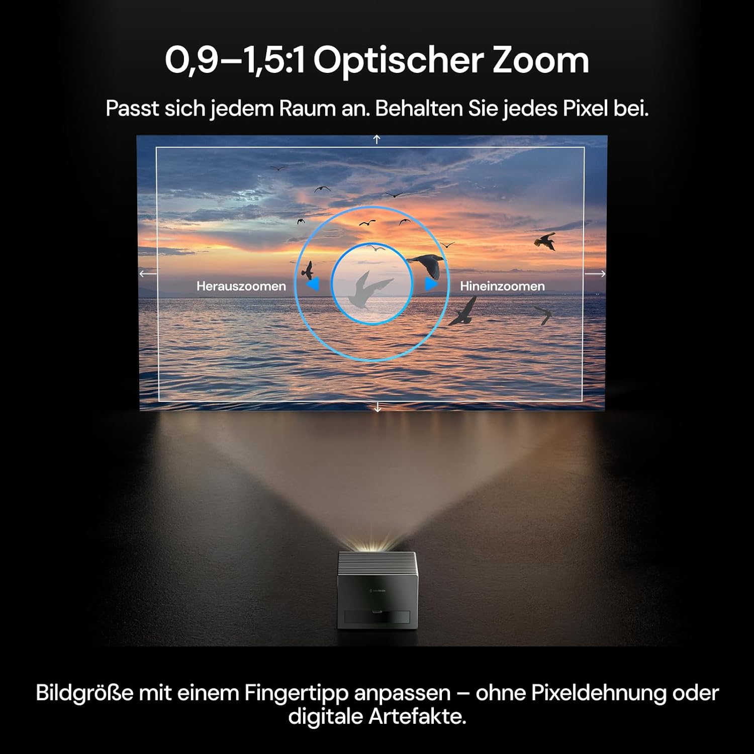 • Прецизна оптика за всяка зона - Със системата от лещи OpticFlex (коефициент на проекция 0,9-1,5) и автоматично персонализируеми функции като фокус и корекция на трапецовидно изкривяване, получавате безупречно изображение във всяка стая, малка или голяма, без загуба на рязкост на изображението. Те могат без усилие да проектират до 7,6 метра и разполагат с преносимо и гъвкаво решение, което осигурява ясни изображения и надхвърля ограниченията на традиционните телевизори.