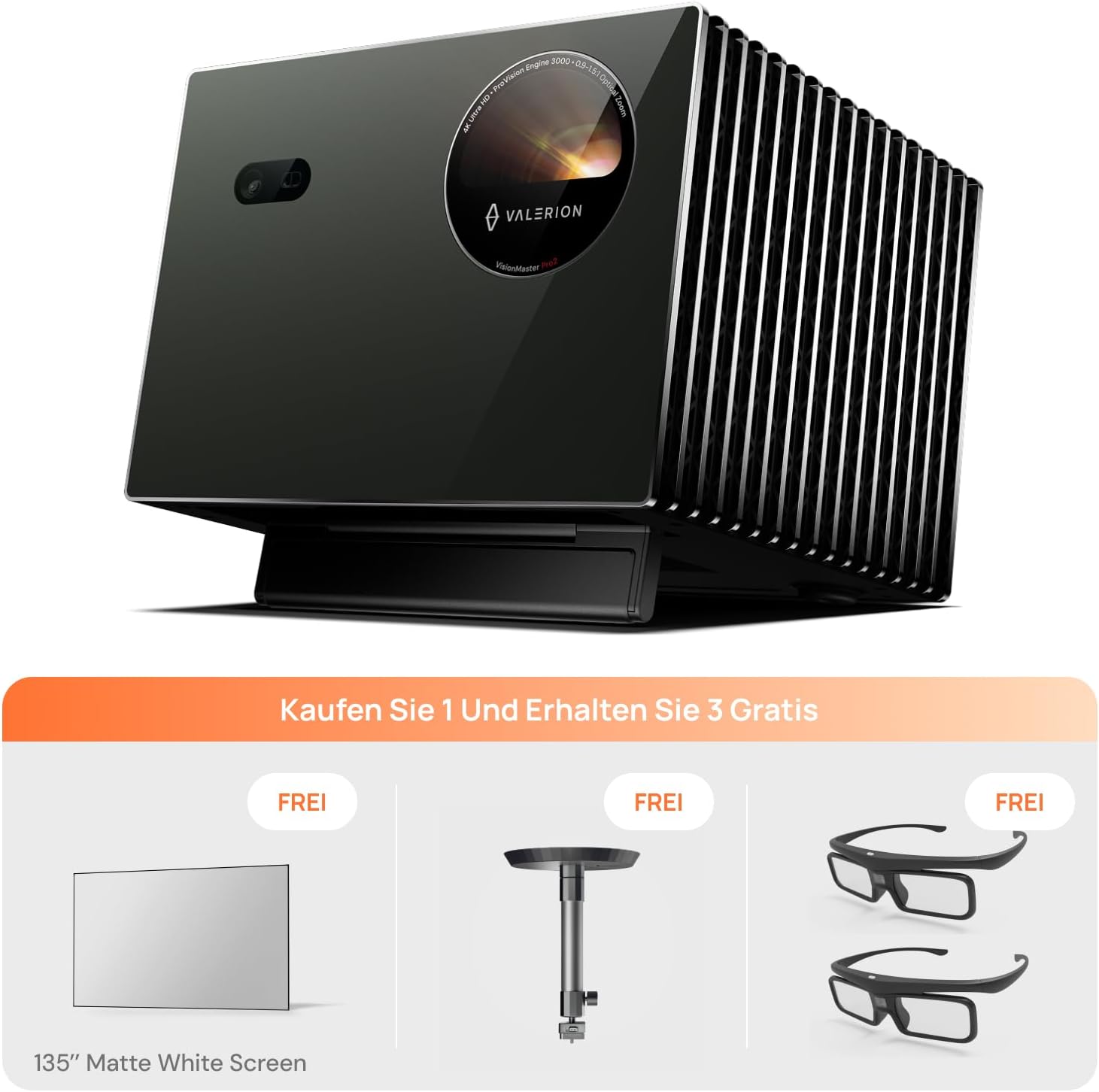 Комплект за домашно кино Valerion - Включва Valerion Pro2 4K проектор + 135" матово бял екран + стенен монтаж + 3D очила