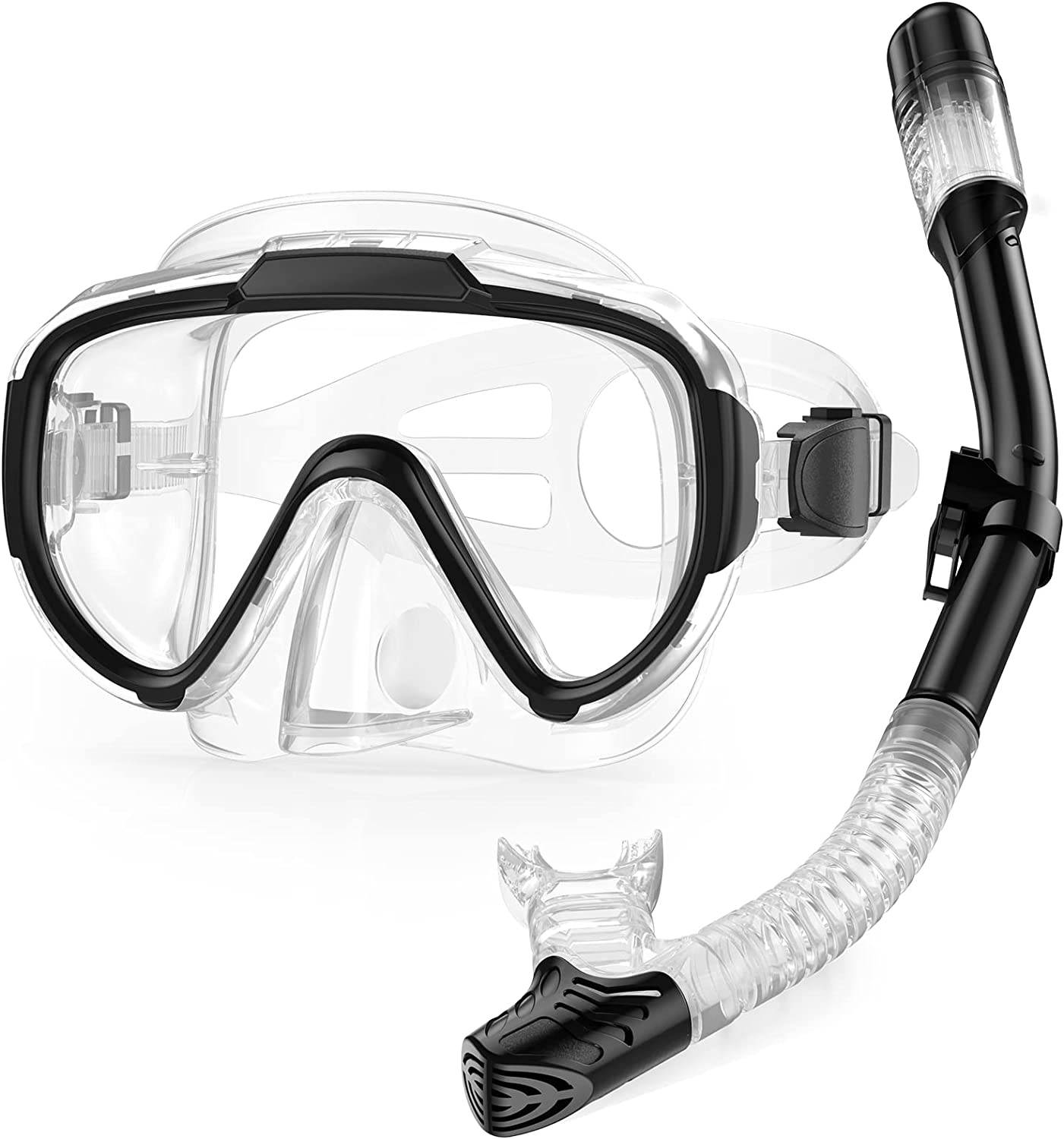 Комплект за гмуркане Lealinga, Включва маска и шнорхел, 180° ъгъл на видимост, Регулируема каишка, Черни
