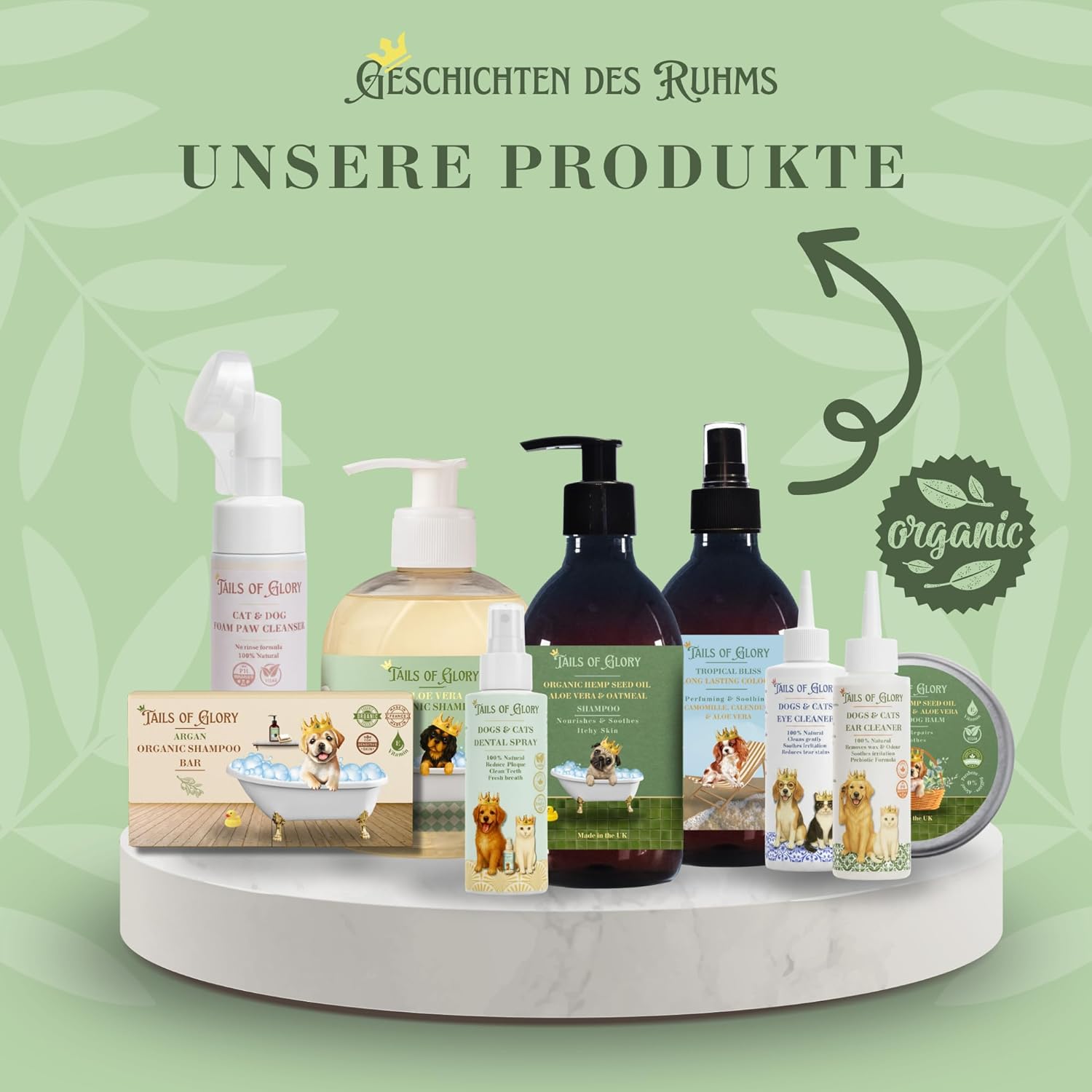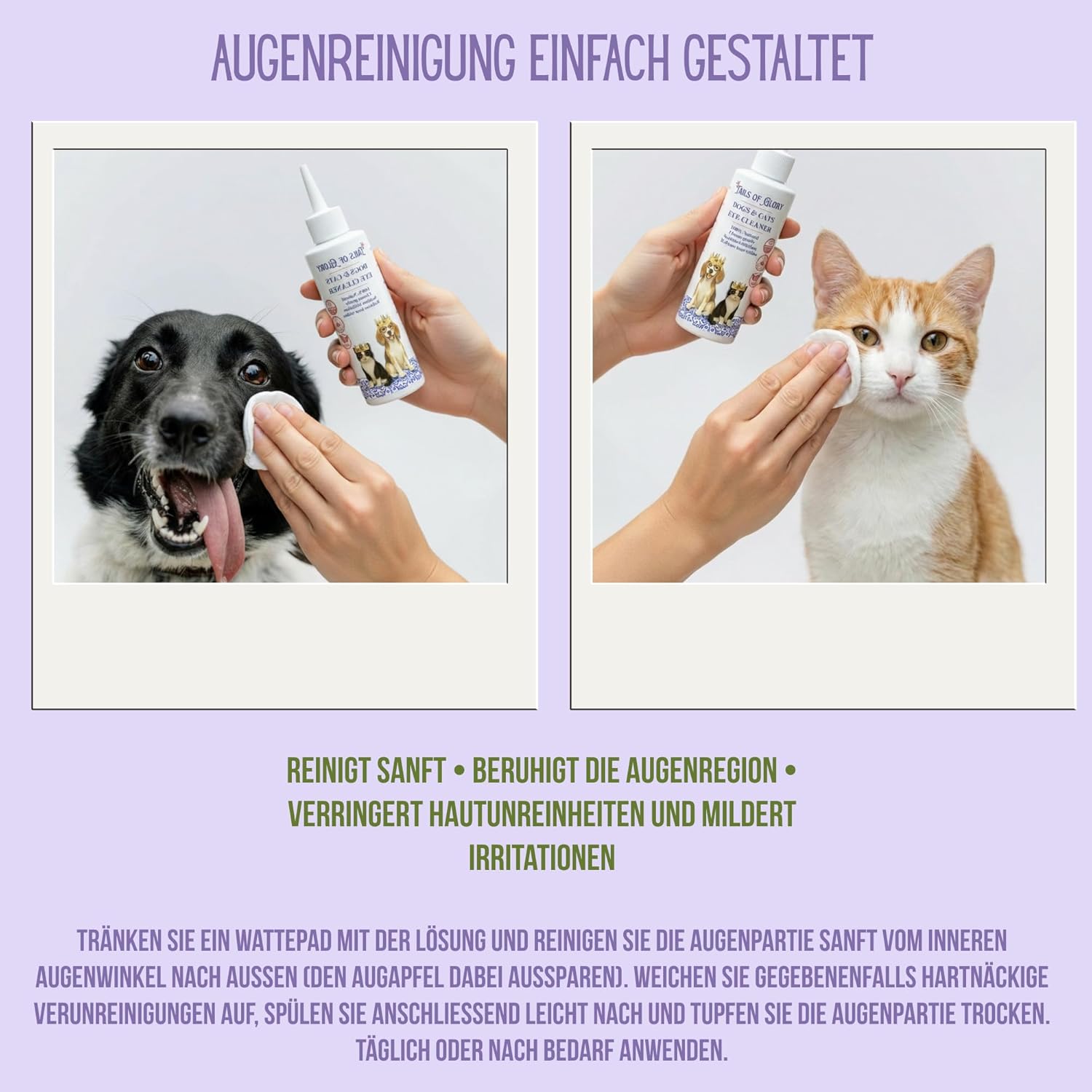 • 100% натурална и нежна грижа за очите. Част от революцията в чистата грижа за очите: Този почистващ препарат за очи с натурална формула за кучета и котки нежно премахва замърсявания, отломки и остатъци от сълзи – напълно без агресивни химикали или изкуствени добавки. pH неутрален и идеален за ежедневна употреба.
