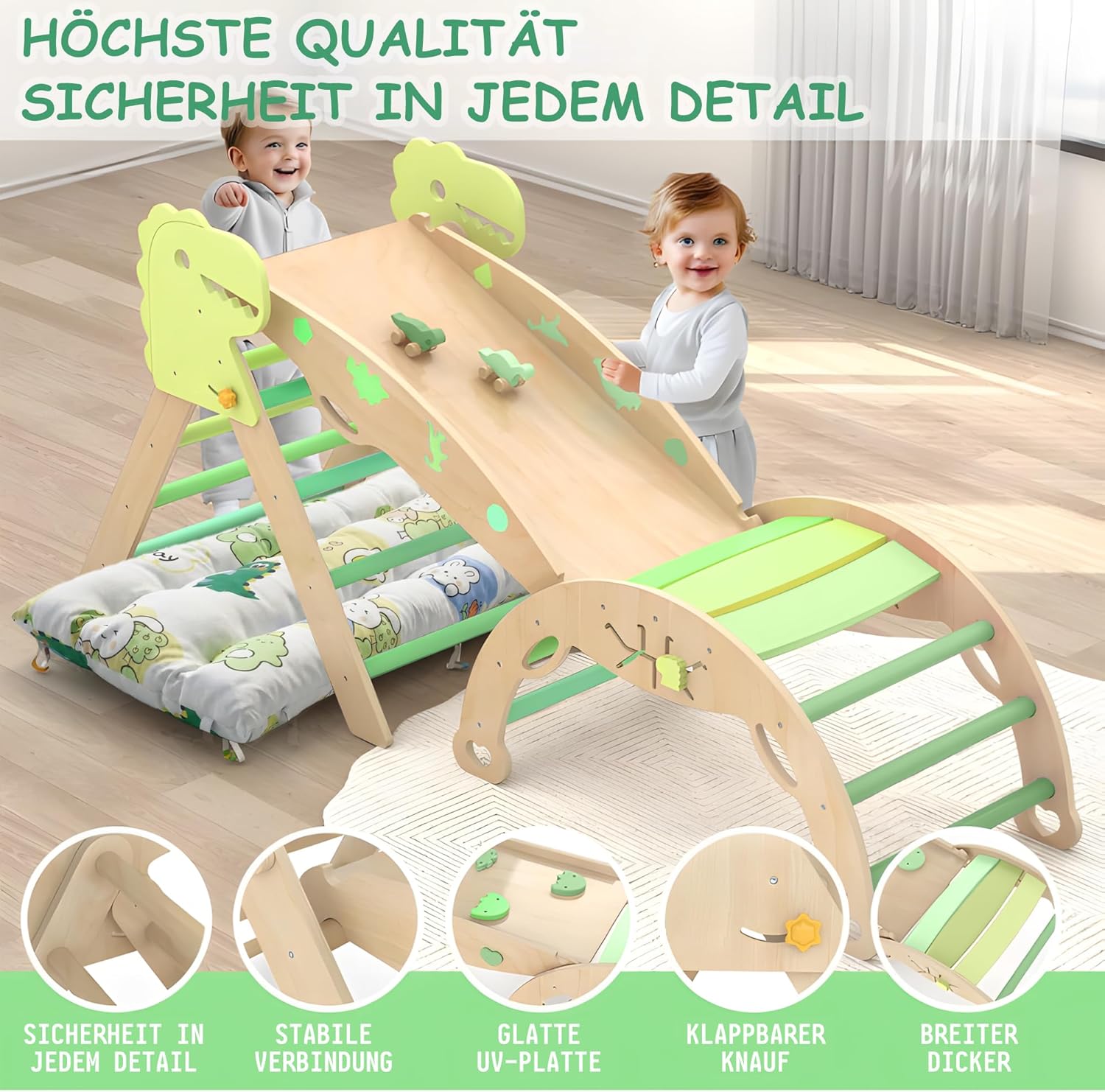• Детските катерушки за вътрешна употреба са специално проектирани за ранните етапи на развитие на бебетата. Катерушките са предназначени да насърчават физическото развитие, баланса и координацията на бебетата, позволявайки им да растат, докато играят, и да се забавляват двойно повече, докато растат. Дървените катерушки за външна употреба са идеалният специален подарък за бебета.