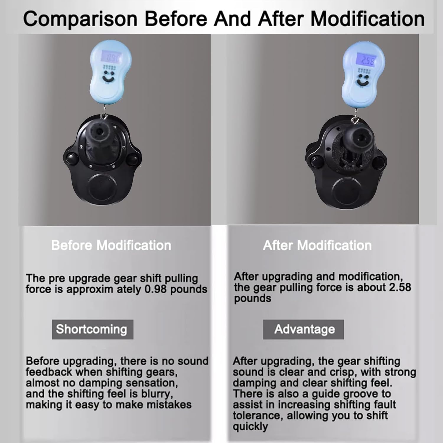 Продуктът в продажба включва само амортисьорния компонент на скоростния лост, а не тялото на скоростния лост.