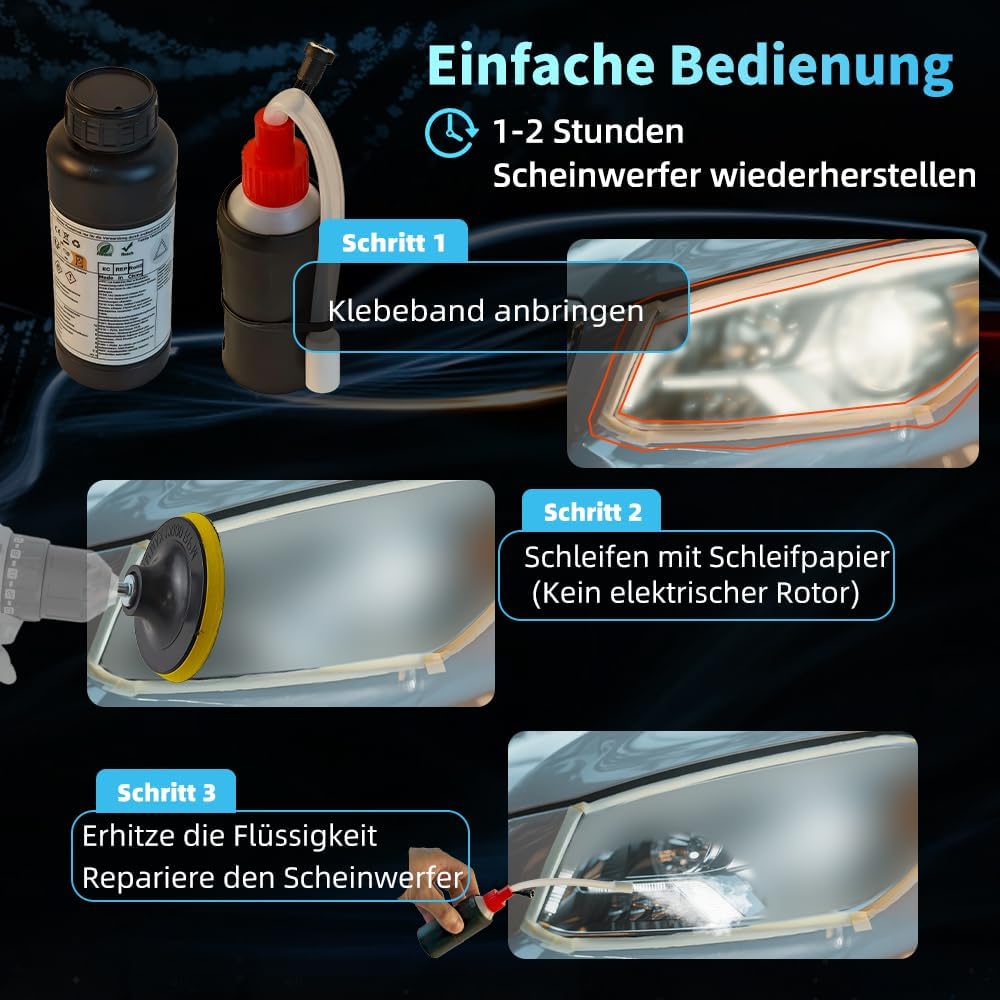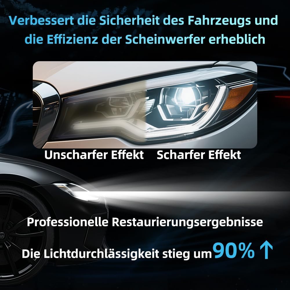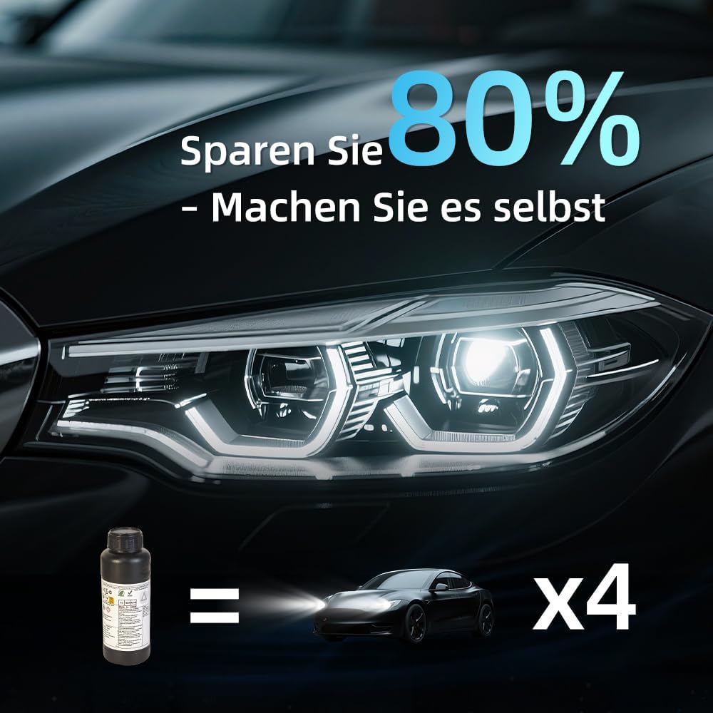 • Икономично решение за кондициониране на фарове: С този комплект за реставрация на фарове можете сами да ремонтирате фаровете на автомобила си, спестявайки скъпи професионални услуги за кондициониране на фарове. С един комплект могат да бъдат реставрирани фаровете на четири превозни средства, така че фаровете ви да останат ярки и като нови в дългосрочен план.