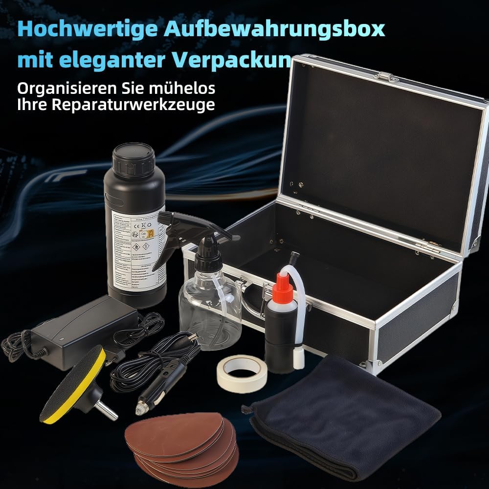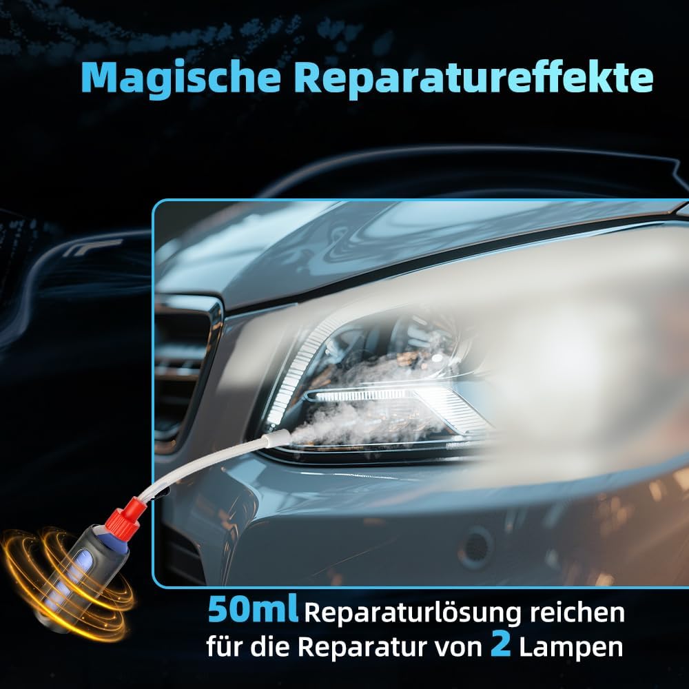 Комплект за обработка на фарове, 710 г, Комплект за парно почистване на матови и слепи фарове, Комплект за полиране на фарове за пожълтяване/стареене, Включва шкурка и калъф за съхранение