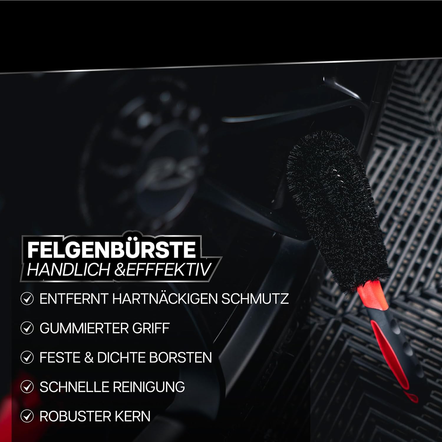 • Четки за джанти: четката за джанти премахва без усилие упорити замърсявания като масло, грес и загорял спирачен прах от джанти, спици, решетка на радиатора, двигател и ауспух