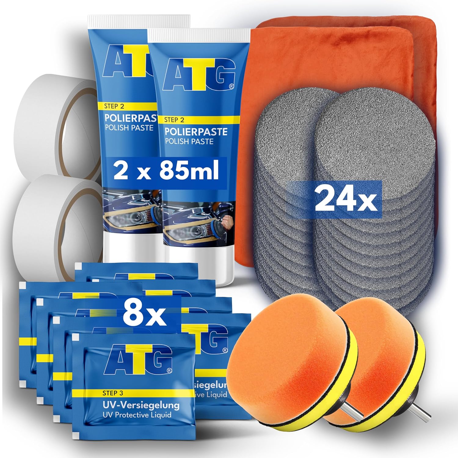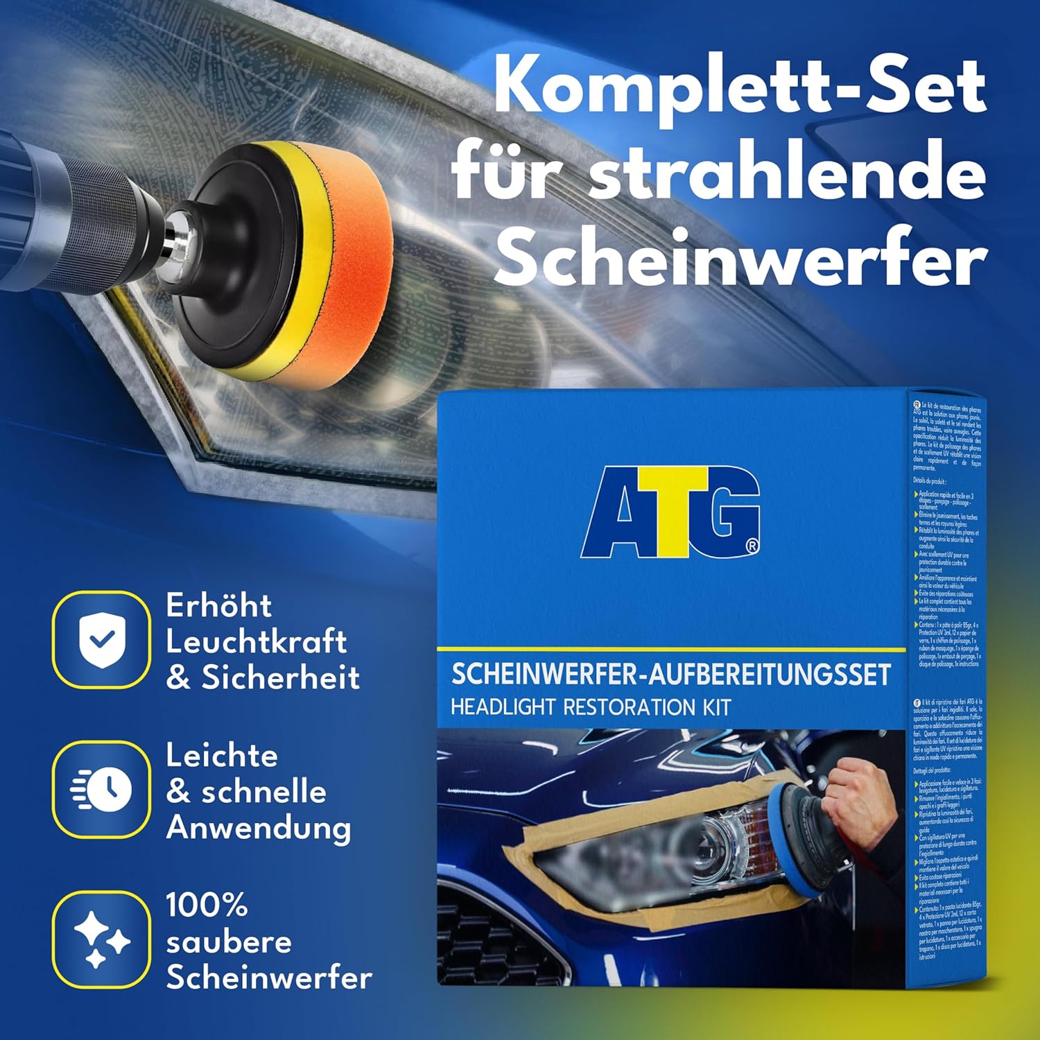 Комплект за подготовка на фарове ATG®, универсален комплект за полиране на фарове за автомобили за матирани и слепи фарове, бърза и лесна подготовка на фарове, комплект за ремонт на двойни фарове