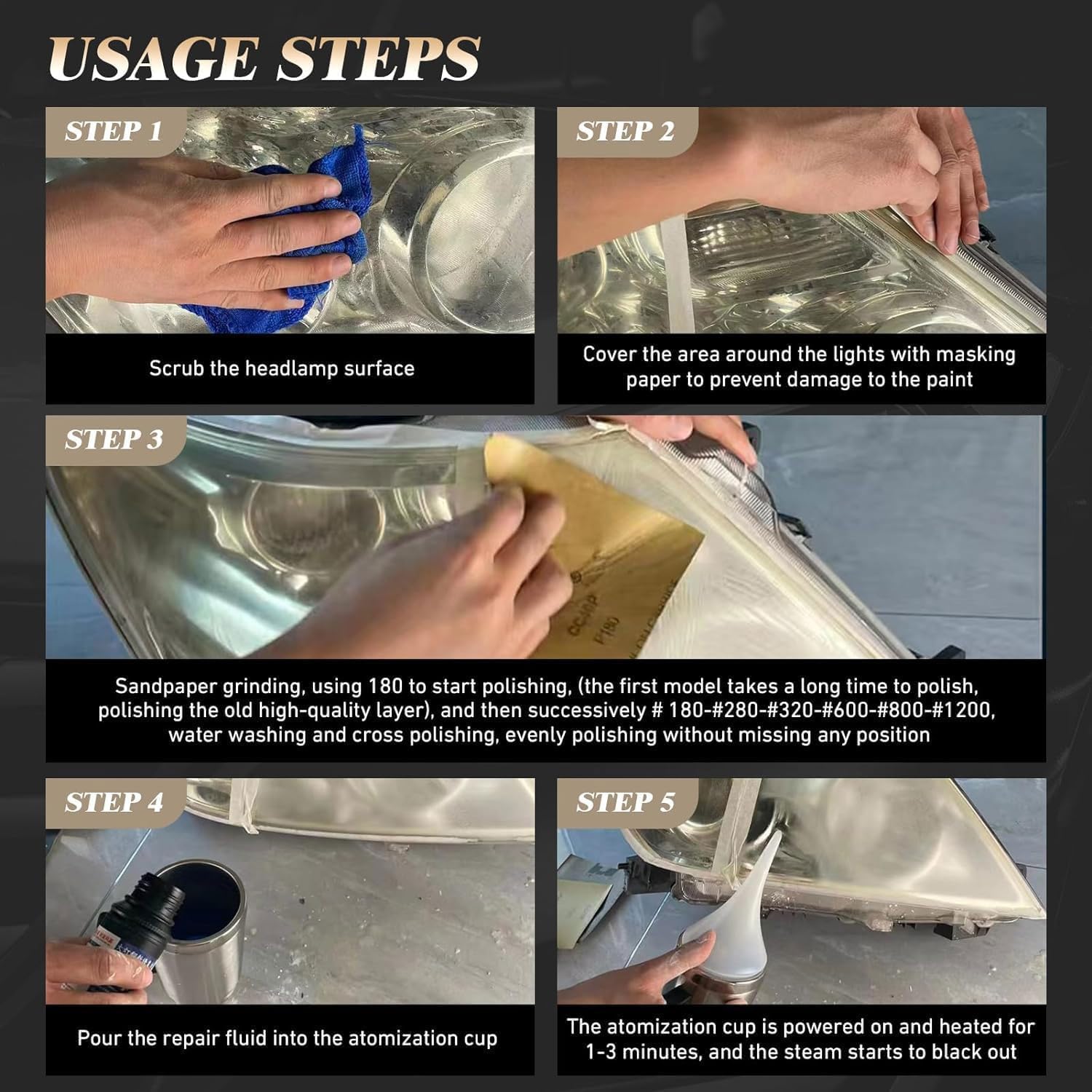 Комплект за подготовка на фарове, комплект за почистване на фарове с пара, комплект за полиране на фарове, инструмент за ремонт на полиращи фарове, комплект за възстановяване на фарове от пожълтяване, драскотини, размазване, пукнатини
