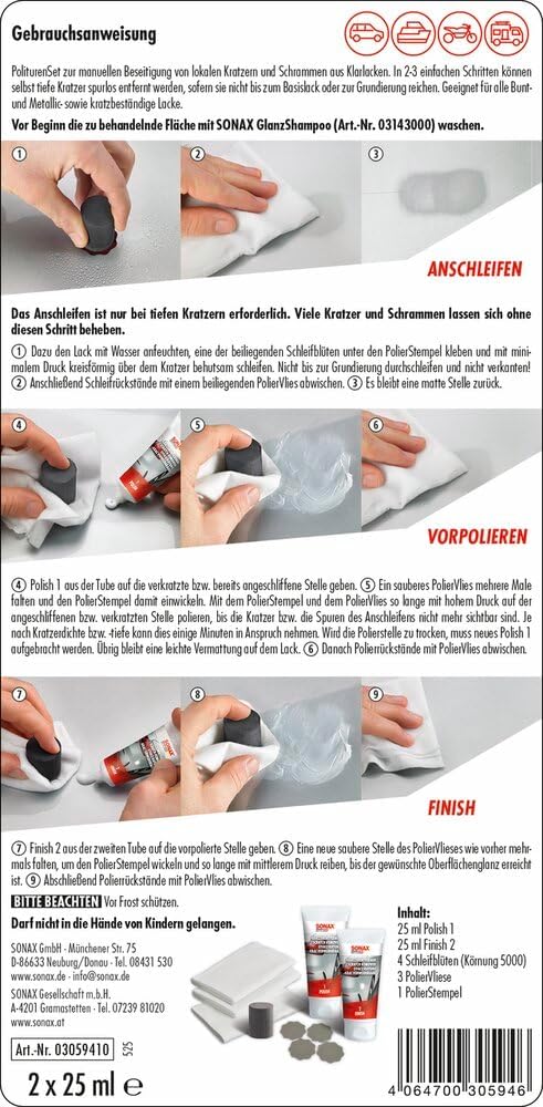 Комплект за премахване на драскотини от боя Sonax (50 мл) за ръчно премахване на изолирани драскотини и ожулвания, прозрачен лак, 03059410
