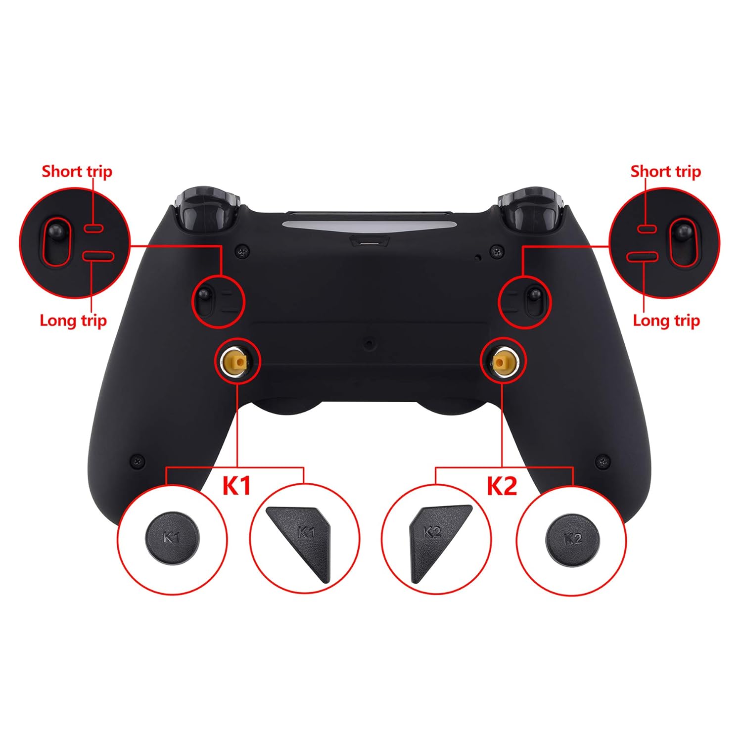 Комплект за пренастройка на спусъка на eXtremeRate DAWN2.0 FlashShot за PS4 контролер CUH-ZCT2, кутия за подмяна „Направи си сам“ и платка за надграждане, 2 бутона за заден ход и 2 заключващи механизма за спусъка за PS4 контролер JDM040/050/055, черен