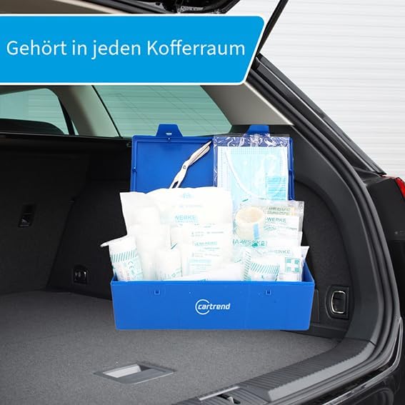 Ein Verbandskasten gehört in jedes Fahrzeug. Die cartrend Verbandstasche kann im Falle eines Unfalls schnell zum Einsatz kommen und passt in jeden Kofferraum oder in die Haushaltsapotheke.