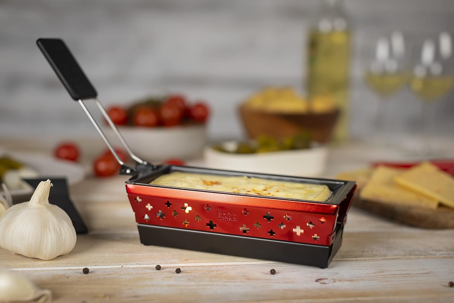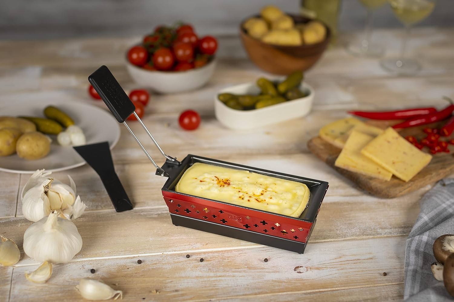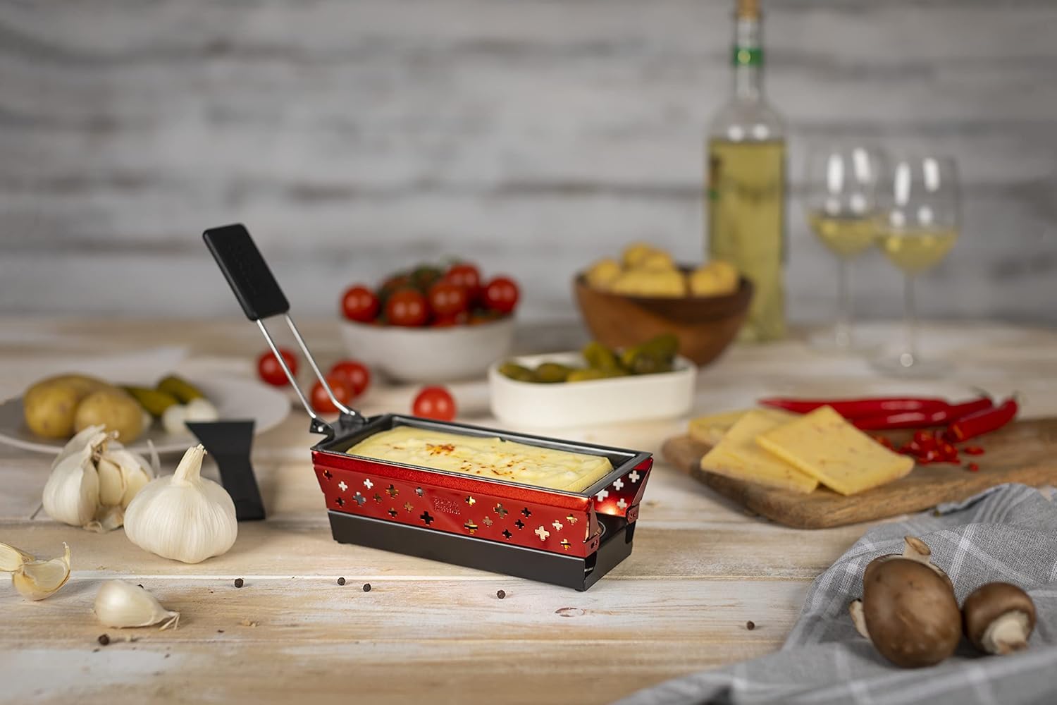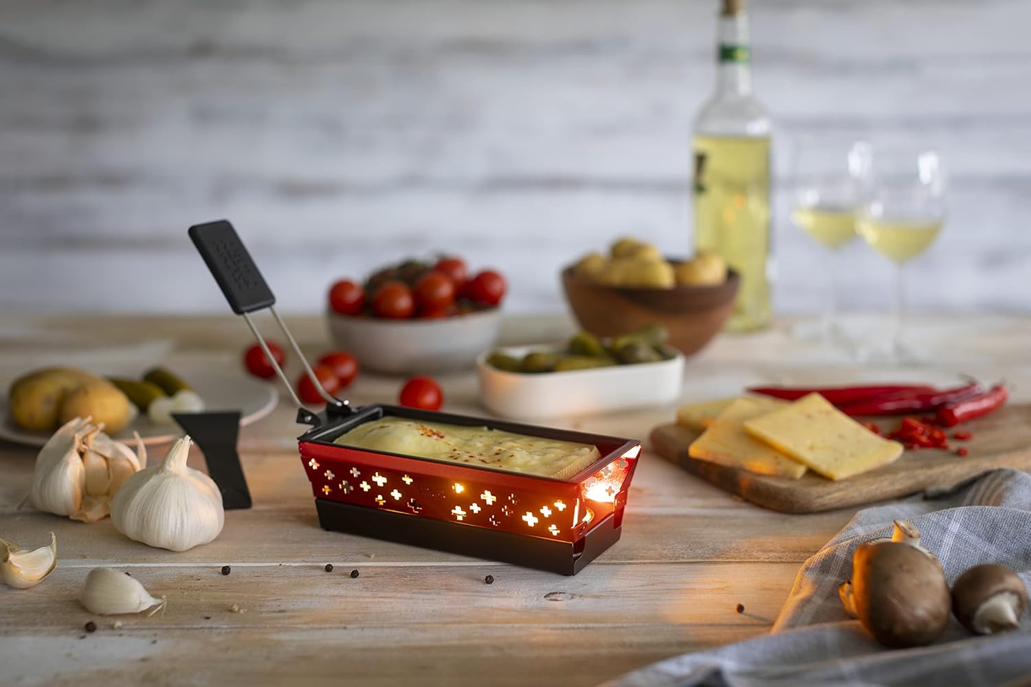 С комплекта Raclette Candle Light Mini ще бъде особено уютно, особено на свещи. Съставките се приготвят в грил тигана само от пламъка на свещта за нула време. Щанцовият мотив е особено добър в пламъка и оставя трайно впечатление.