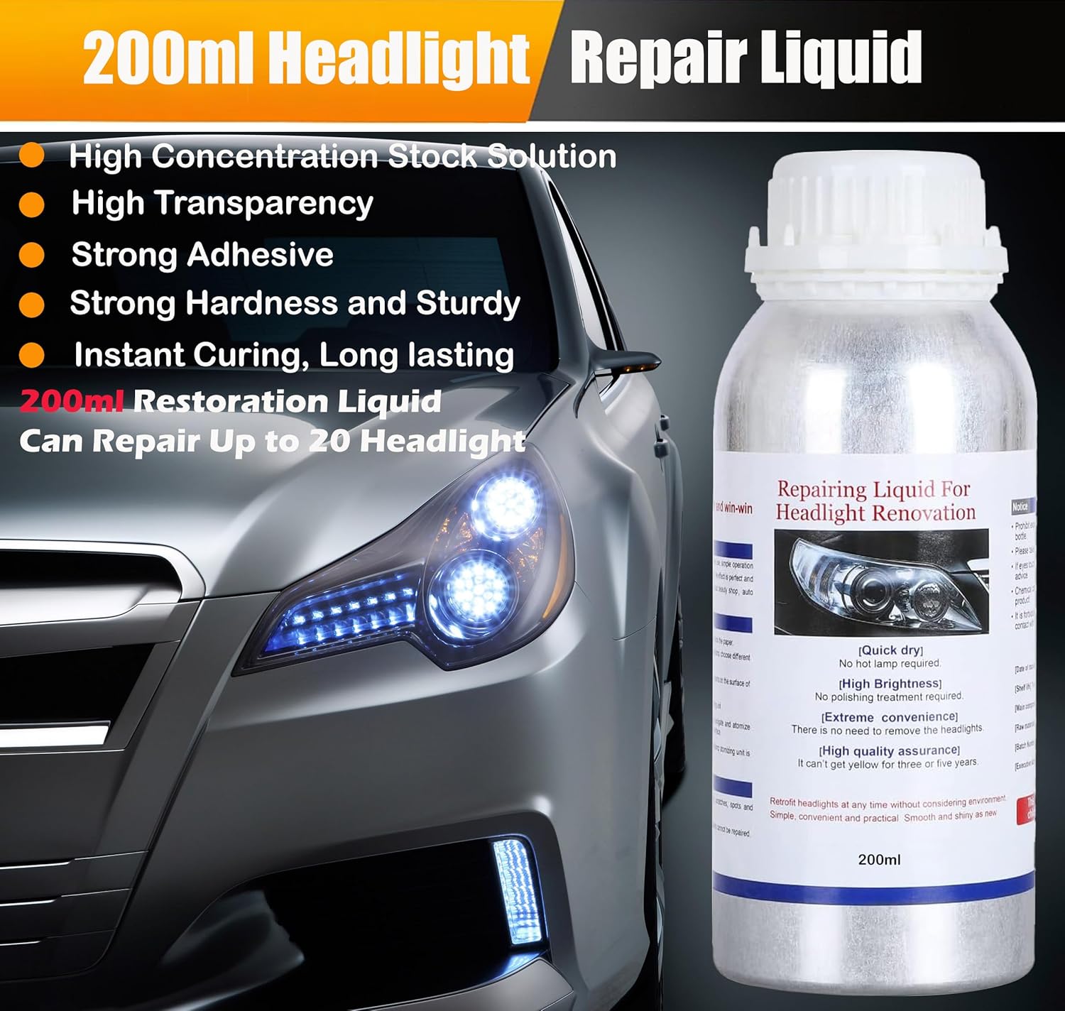 The formation of a new UV protective film on the headlight surface not only improves product quality, but also easily solves the problems of yellowing, scratches, blurring and cracks in the headlights. Make your headlights look brand new, improve visibility and safety