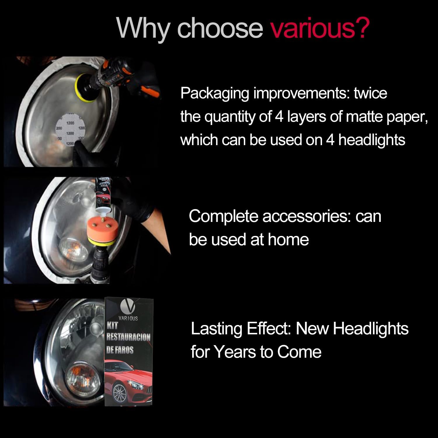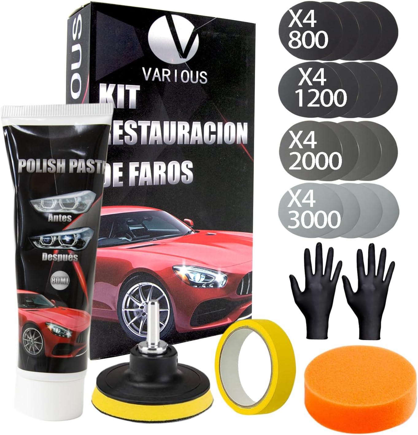 Описание на РАЗЛИЧНИ комплекти за полиране на фарове за превозни средства!Комплект за почистване на фарове на превозно средство: Вече не е необходимо да сменяте фаровете!