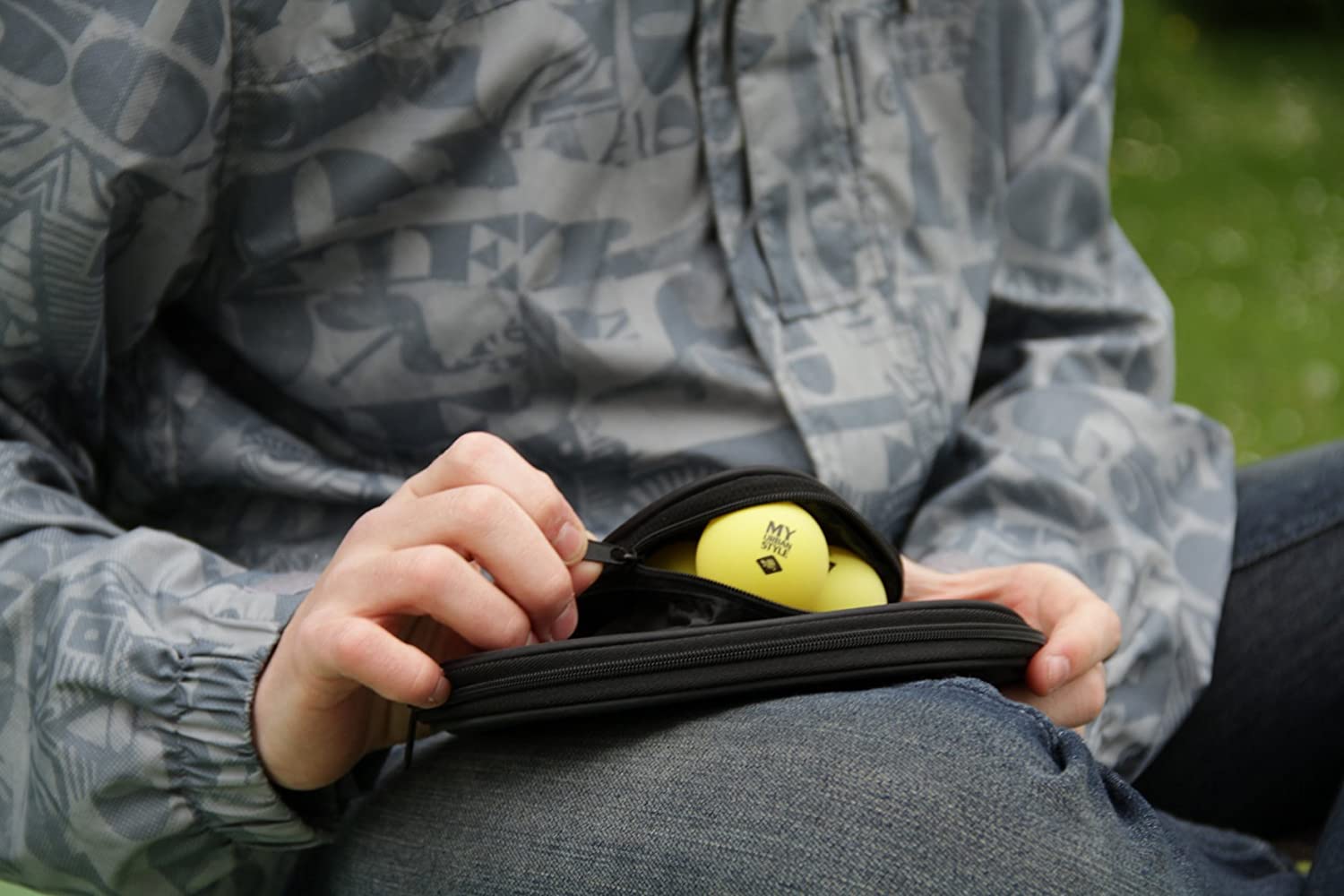 • Подходящ калъф за хилка в черно с щампа, отделение за топки за 3 топки.