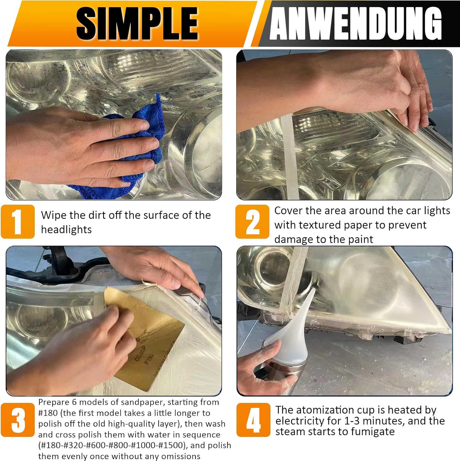 Комплект за третиране на фарове на автомобил, Комплект за почистване на фарове с пара 800 г, Фарове с пара, Комплект за полиране на фарове, Комплект за ремонт на фарове за пожълтяване, надраскване, замъгляване, окисляване