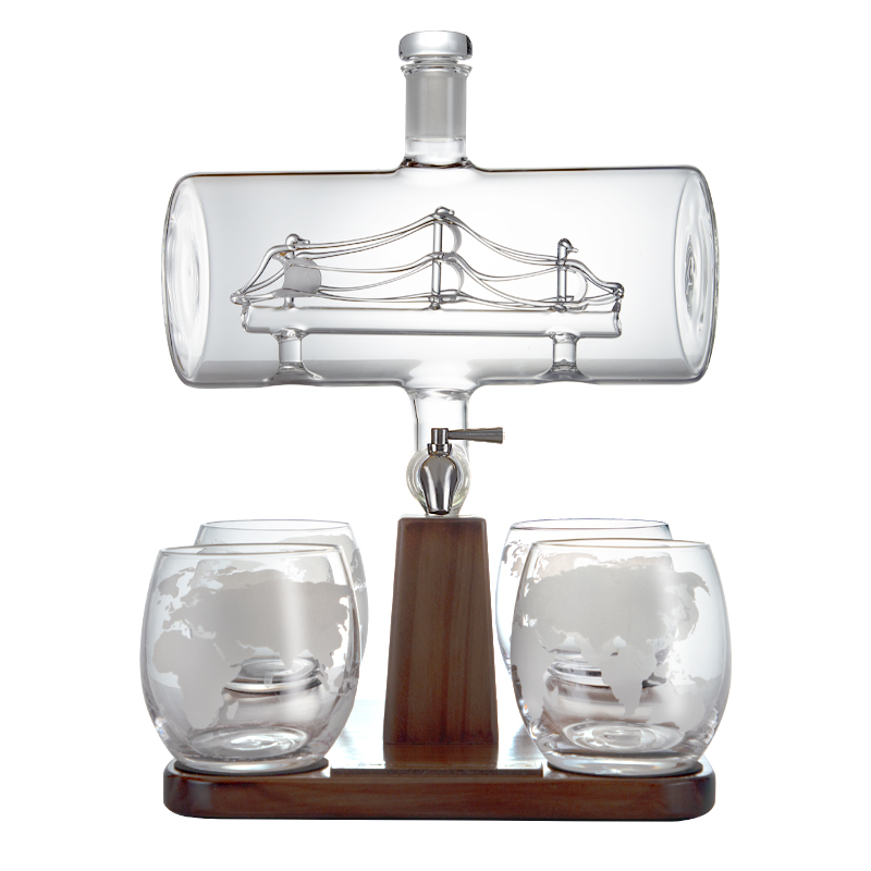 Комплект за уиски с 4 чаши буре е начин да внесете повече вдъхновение в домашния си бар и пособия за сервиране на питиета, като издига ритуала на съвсем друго ниво. Погледнете снимките само – изящно стъклено буре със силует на кораб във вътрешността. Готов да съхрани всяка ваша любима напитка. Поставен на подходящ поднос, на който място намират и четири класни великолепни чаши в същата стилистика. Истинско вдъхновение за разговори, специална обстановка, вдъхновена комуникация на всякакви теми с приятели, близки, колеги. Всеки заслужава да има повече красота в живота си. Затова, не правете компромиси и с домашния бар и пособията в него и си осигурете най-доброто.
