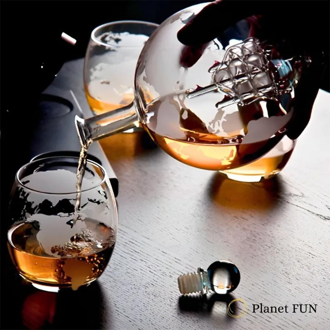 Освен за съвършен домашен бар, комплект за уиски с 4 чаши глобус е идеален и като подарък по повод или пък без. Спокойно можете да го поднесете като дар на корпоративно ниво, на сватба, годишнина или за друго специално събитие. Можете и да зарадвате някого без за това да има определена причина, просто за да покажете на човека, какво значи за вас той. Идеален за подаряване на пътешественици, ценители на класните питиета и хубавите неща в живота, за уиски ентусиастите и хората с афинитет към лукса. Ако край вас има такива, вече знаете какво да им подарите. Ще го оценят! бъдете различни и правете подаръци, които ще се използват и помнят! Този сет определено е от тях.