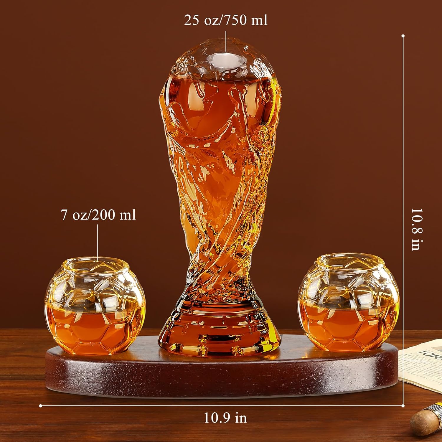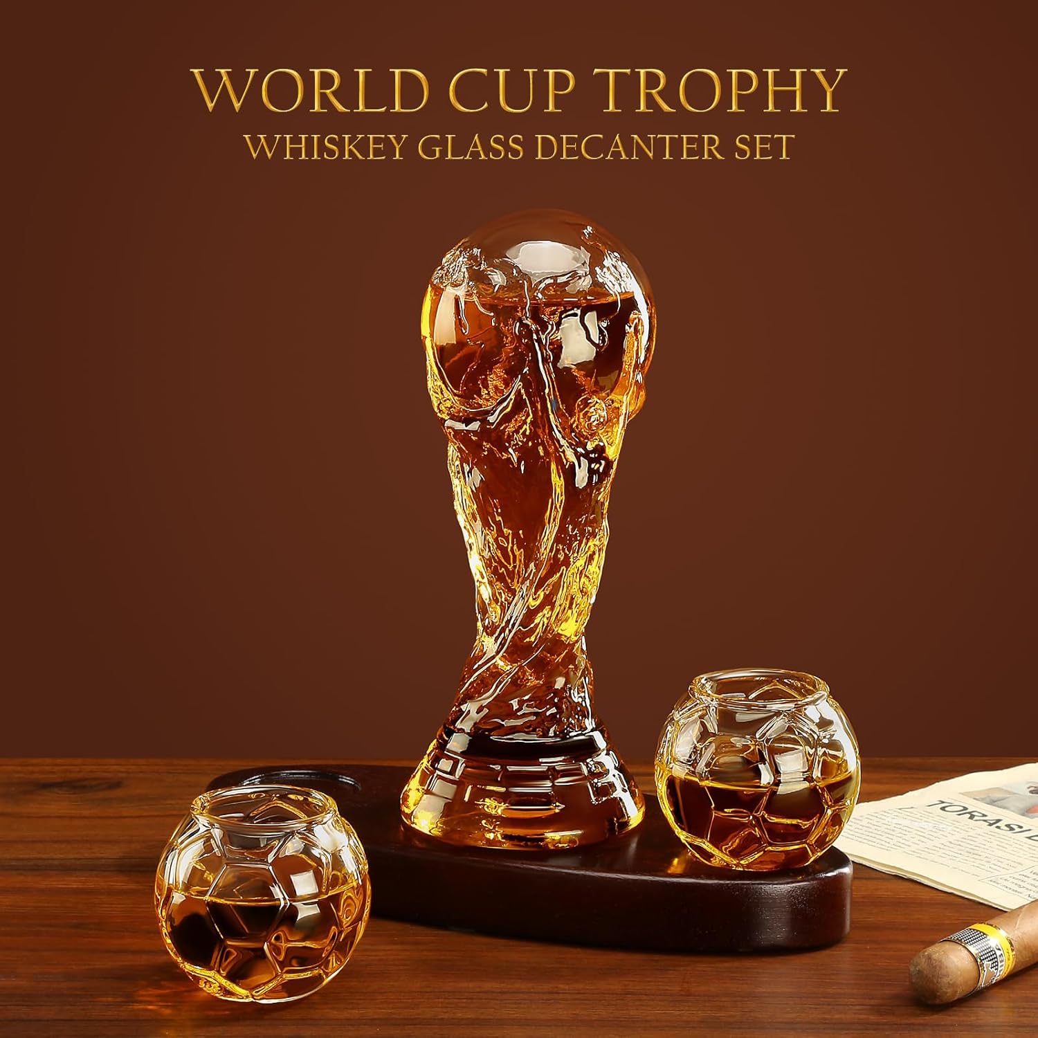 Комплект за уиски Световна куша е начин да внесете повече вдъхновение в домашния си бар и пособия за сервиране на питиета, като издига ритуала на съвсем друго ниво. Погледнете снимките само – изящен бутилка във форма на Световната купа по футбол. Готов да съхрани всяка ваша любима напитка. Истинско вдъхновение за разговори, специална обстановка, вдъхновена комуникация на всякакви теми с приятели, близки, колеги. Всеки заслужава да има повече красота в живота си. Затова, не правете компромиси и с домашния бар и пособията в него и си осигурете най-доброто.