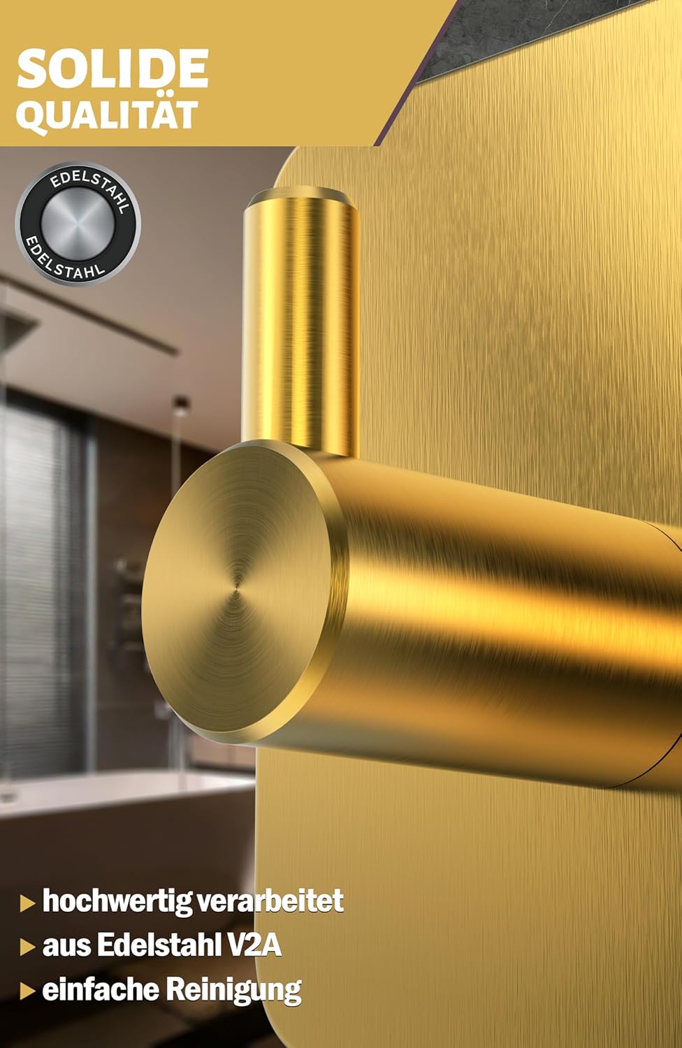 • Солидно качество: висококачествени самозалепващи се куки за кърпи, изработени от неръждаема стомана V2A с двойна защита от ръжда; лесни за почистване – ексклузивни аксесоари за баня за дълготрайно удоволствие