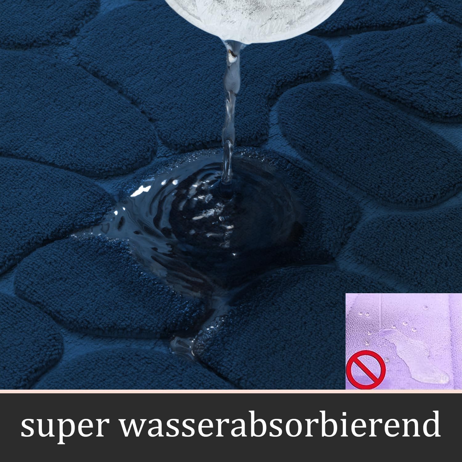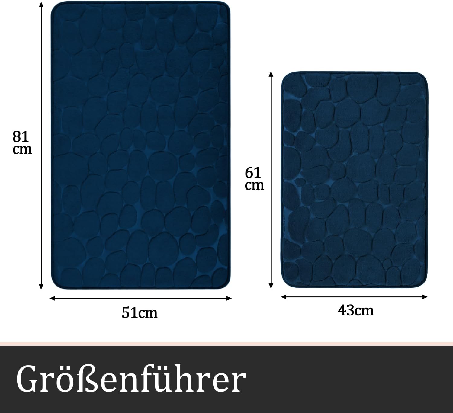 Комплекти килими за баня chakme от 2 броя, Комплект постелки за баня от калдъръмена мемори пяна, дебели, неплъзгащи се постелки за баня, абсорбиращи, перащи се, тъмносини килими за вана, тоалетна и под