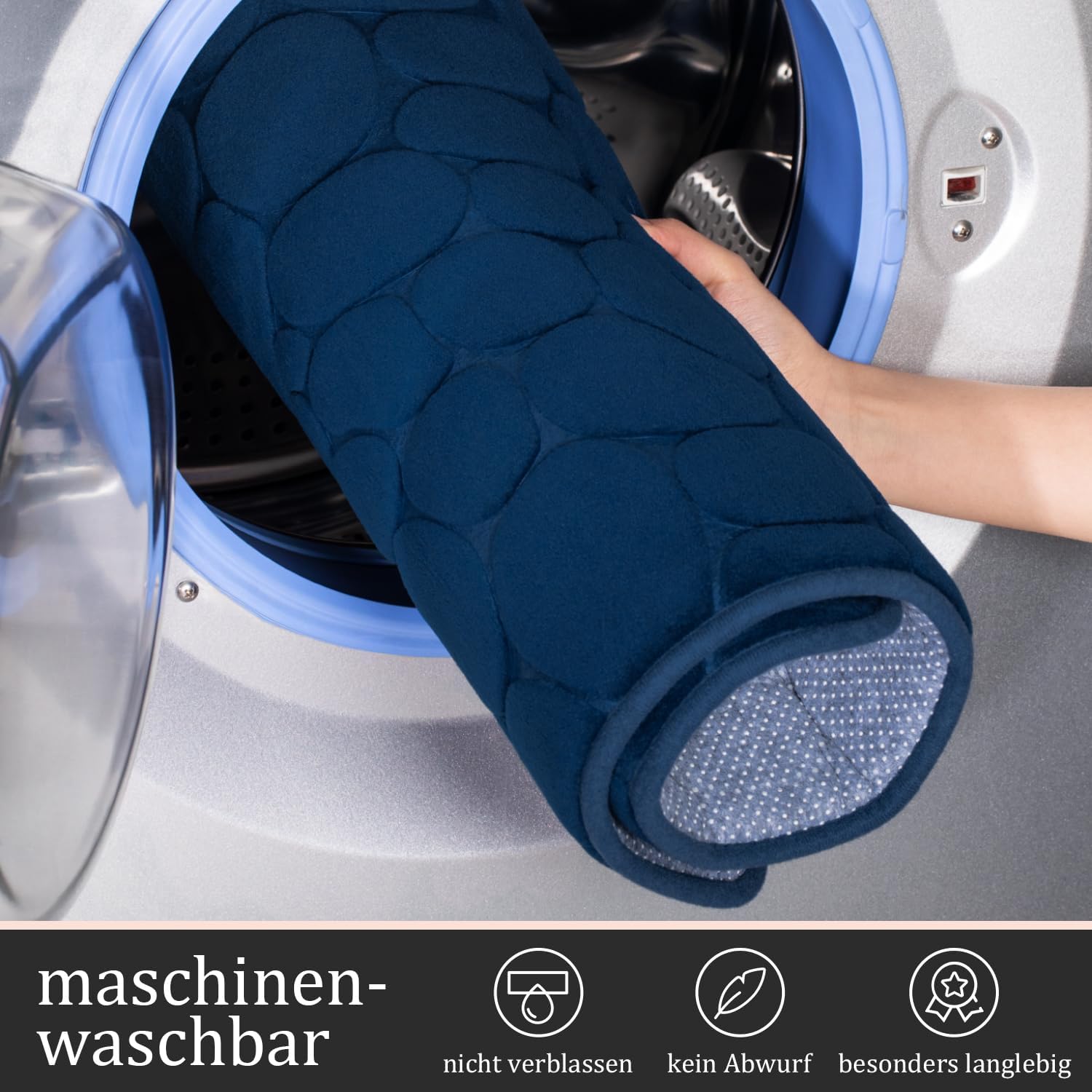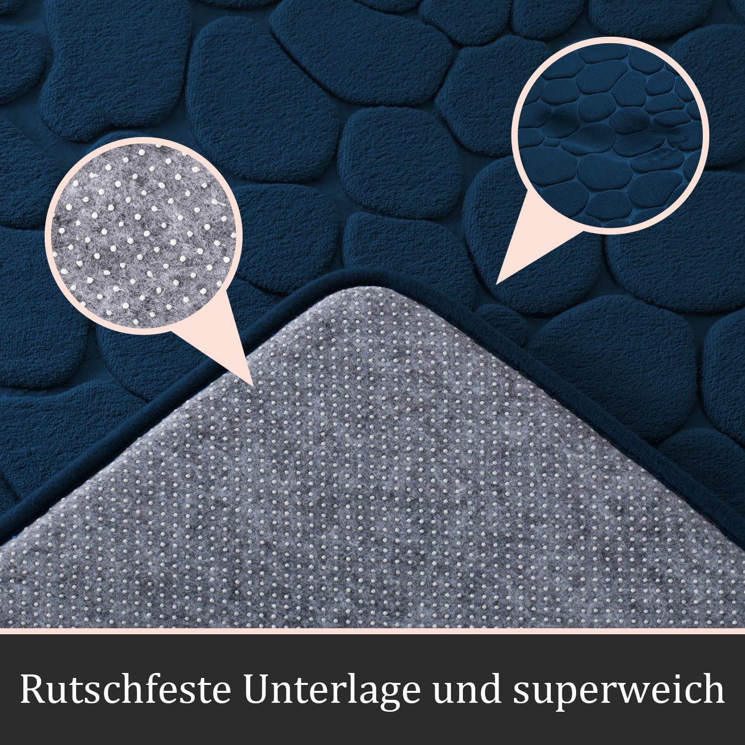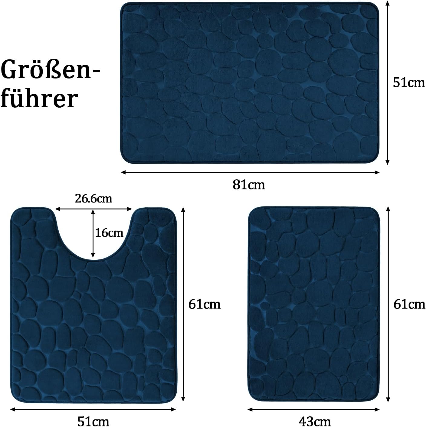 Комплекти килими за баня chakme от 3 части, Комплект постелки за баня от калдъръмена мемори пяна, дебели, неплъзгащи се постелки за баня, абсорбиращи, перещи се, тъмносини килими за баня за вана, тоалетна и под