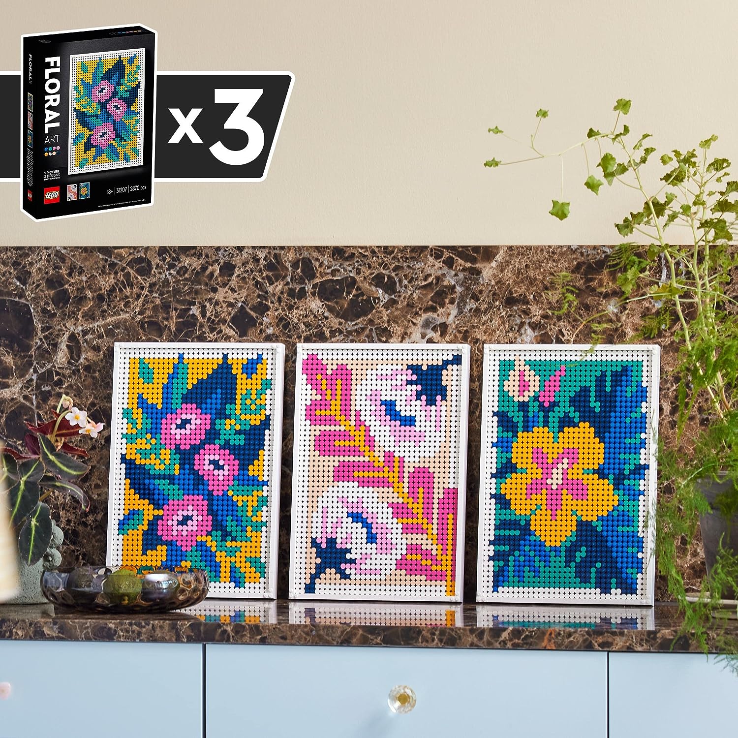 • Внесете природата в къщата и украсете дома си с цветни цветя с комплекта LEGO art flowers, който се състои от 3 снимки с флорални мотиви, от които можете да избирате, които могат да бъдат адаптирани към всеки стил