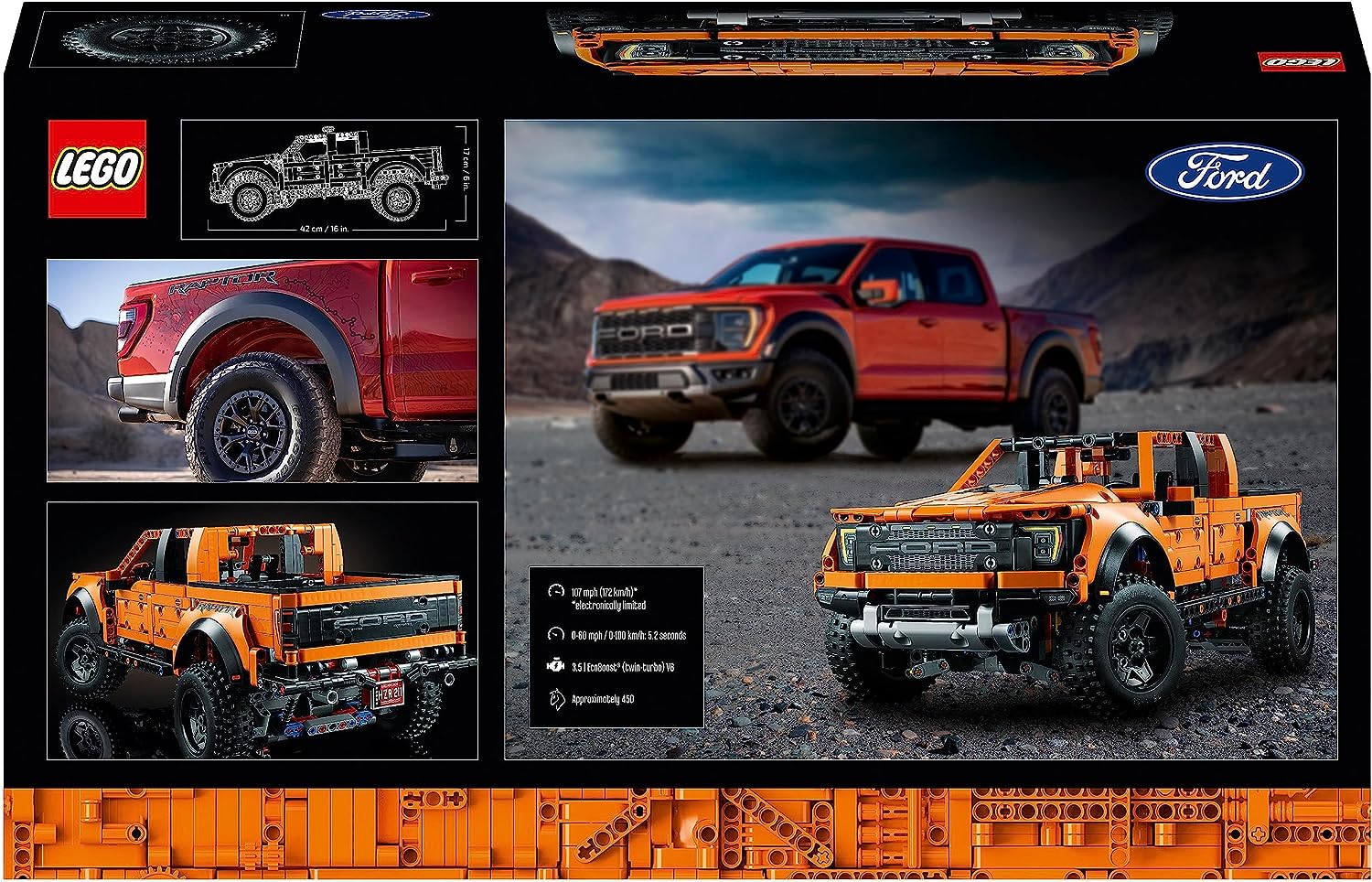 Конструктор LEGO 42126 Technic: Ford F-150 Raptor, 1379 части, Отварящ се капак и врати, Оранжев