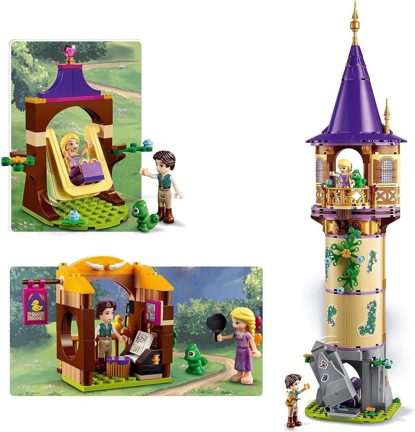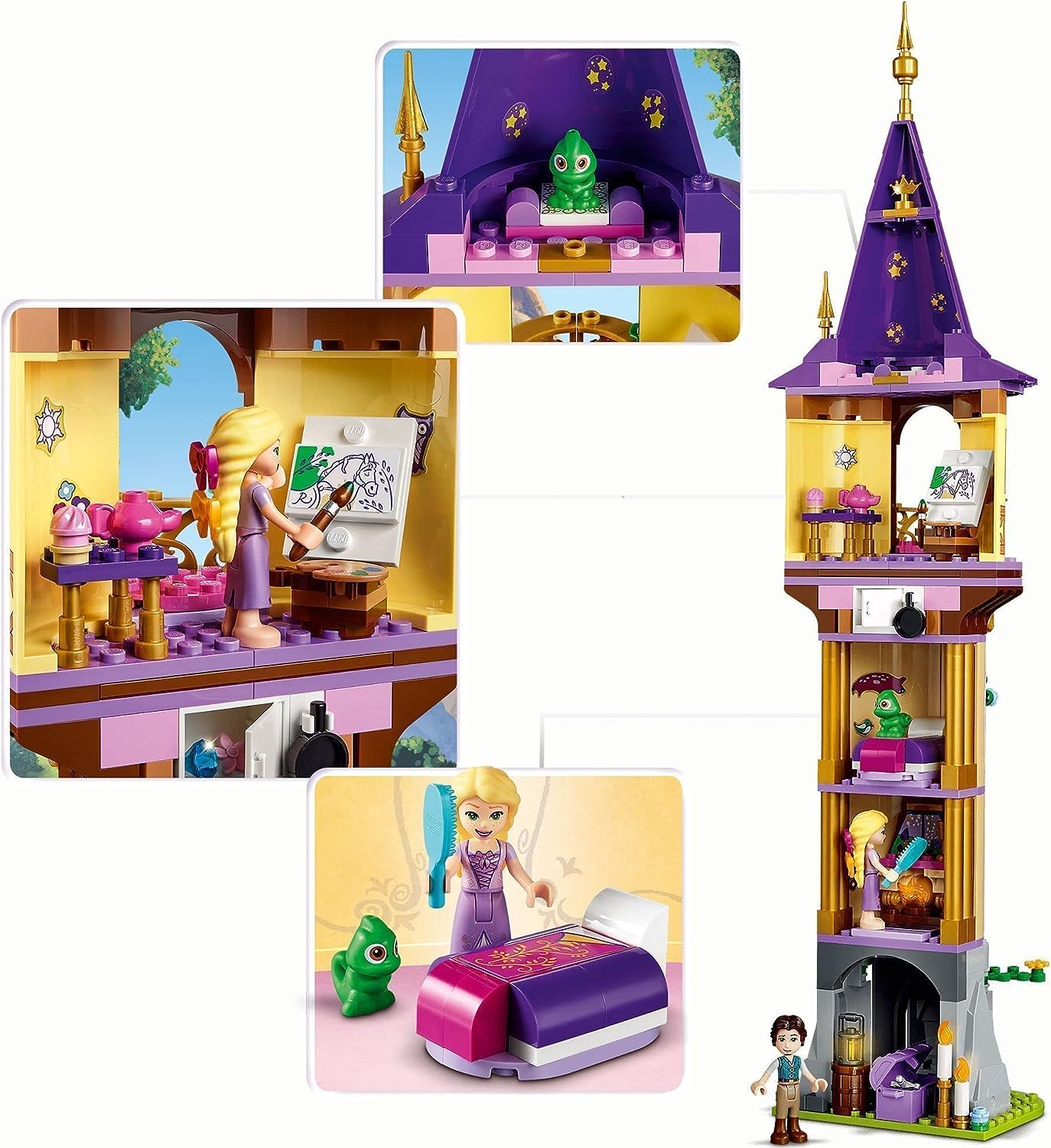 • Този комплект LEGO Disney включва мини кукли Rapunzel и Flynn Rider и хамелеона Pascal LEGO Disney фигурки, с които да си играете в типична обстановка на Disney