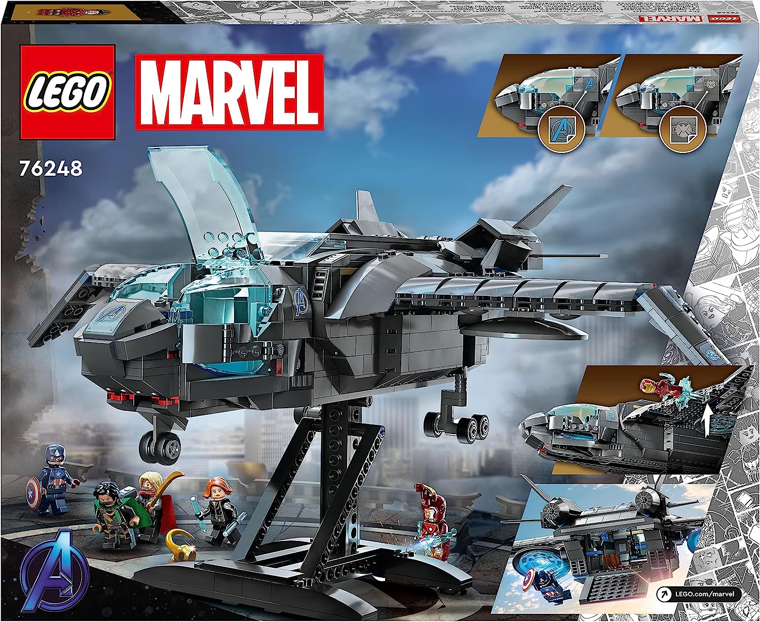 Конструктор LEGO 76248 Marvel: The Avengers Quinjet, 795 части, 14 x 34 x 35 см, 5 минифигурки