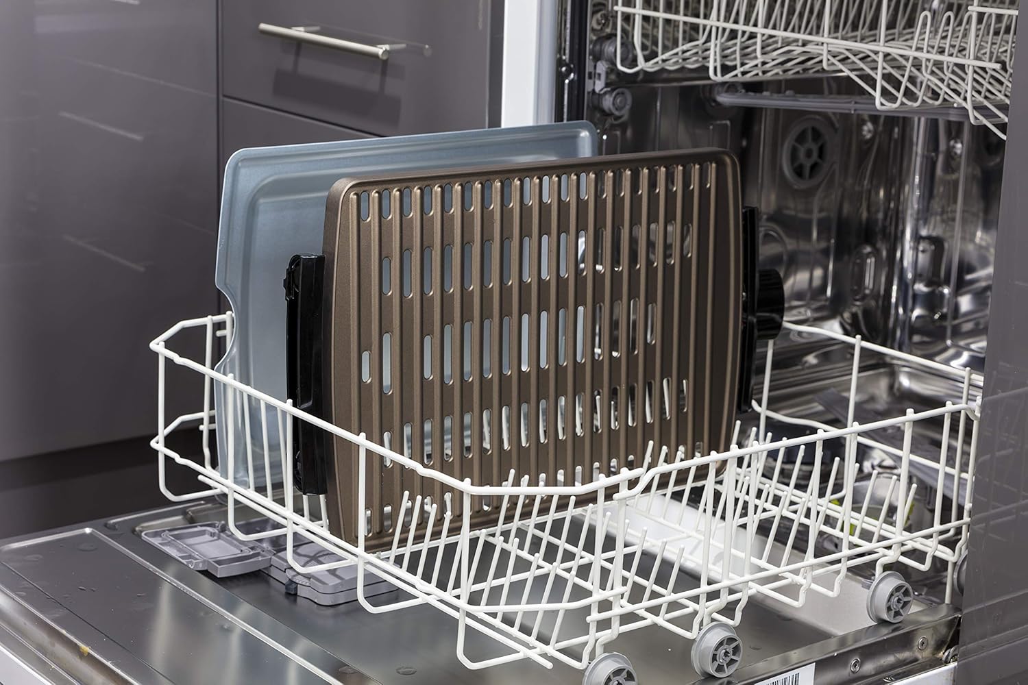 With their high-quality advanced non-stick coating, the removable plates are extremely easy to clean – with a damp cloth or, as well as the drip tray for grease and liquids, in the dishwasher. The plates are also 3x more durable**, so you can easily put them in the dishwasher without the coating wear off.
