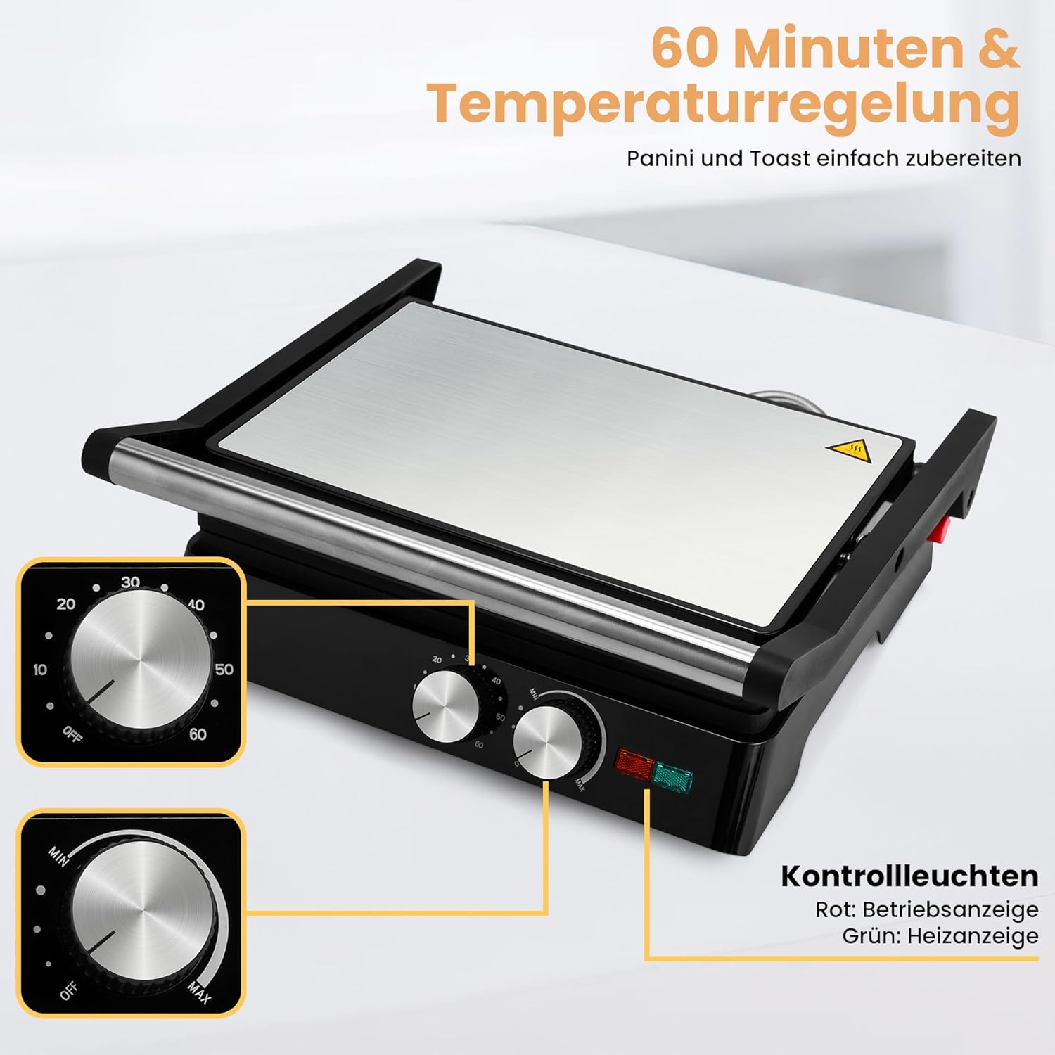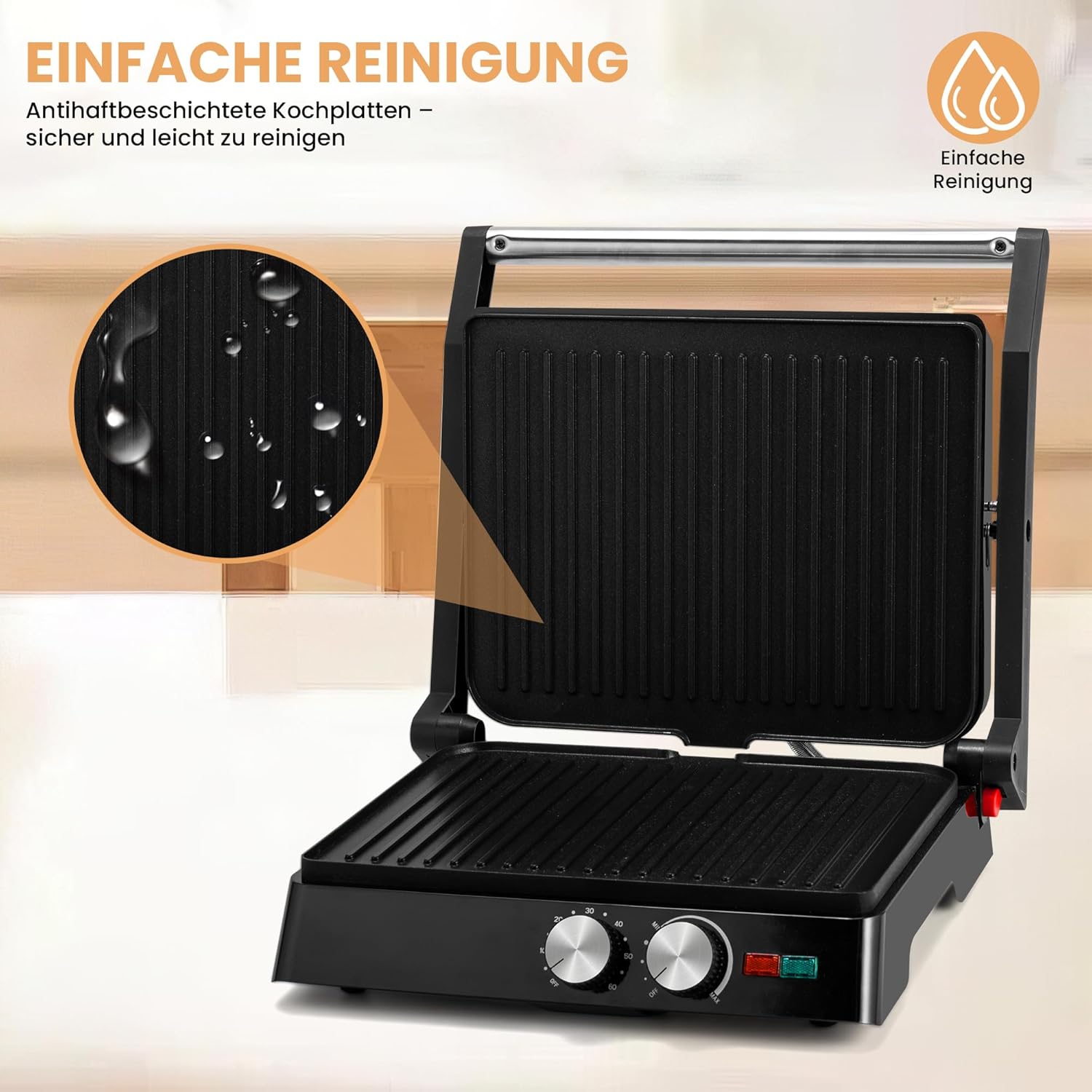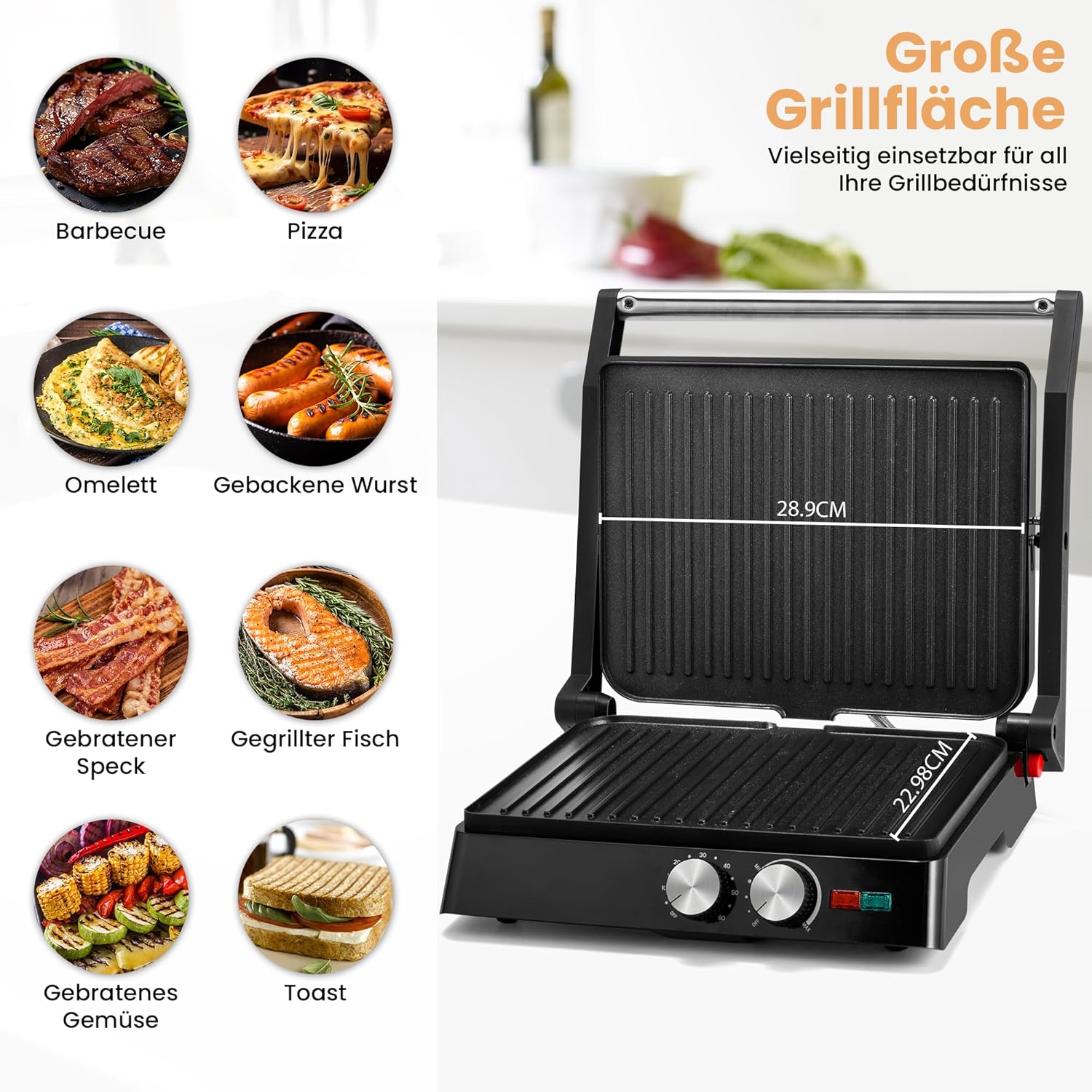 • Многофункционален дизайн: тази контактна скара с мощност 1800 W е идеална за сандвичи, пържоли, панини и други. Универсално устройство, което отговаря на всички ваши нужди за домашно готвене.