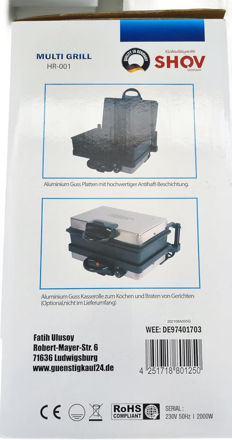 Мултигрил тандур Shov с касар ролка, покритие от гранит Tava за здравословно готвене, висококачествена изработка и качество, безстепенно регулиране, 5 нива на регулиране, система за капене и събиране на олио. Индикатор за мощност (оранжева светлина) 230 V ~ 50/60 Hz - 2000 W Плочи за грил и печене 34,8 x 22,8 см Здравословно удоволствие от готвенето благодарение на долното и горното нагряване Подходящ за печене на грил, препичане, готвене, печене, задушаване, затопляне и поддържане на топлина