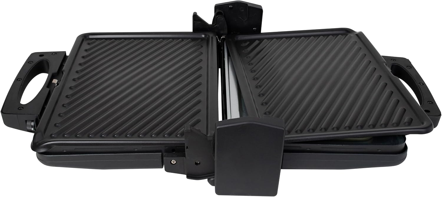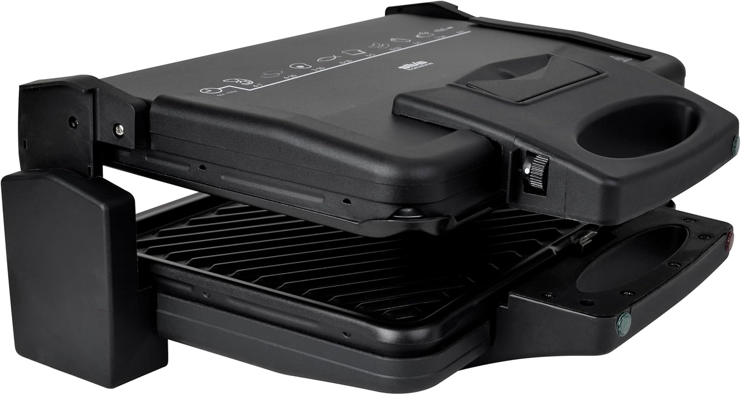 Със Silva Homeline KG 2410 можете да се насладите на максимална гъвкавост при печене на скара. Два отделни термостата позволяват прецизни настройки на температурата за различни нужди на барбекюто. Използвайте грила за едностранно или двустранно печене на скара и се възползвайте от практичната функция за печене за вкусно разтопено сирене. Функцията за сгъване на 180° превръща контактния грил в настолна скара, идеална за социални събирания. В допълнение, вграденото място за съхранение на кабела осигурява спретнато съхранение след употреба.