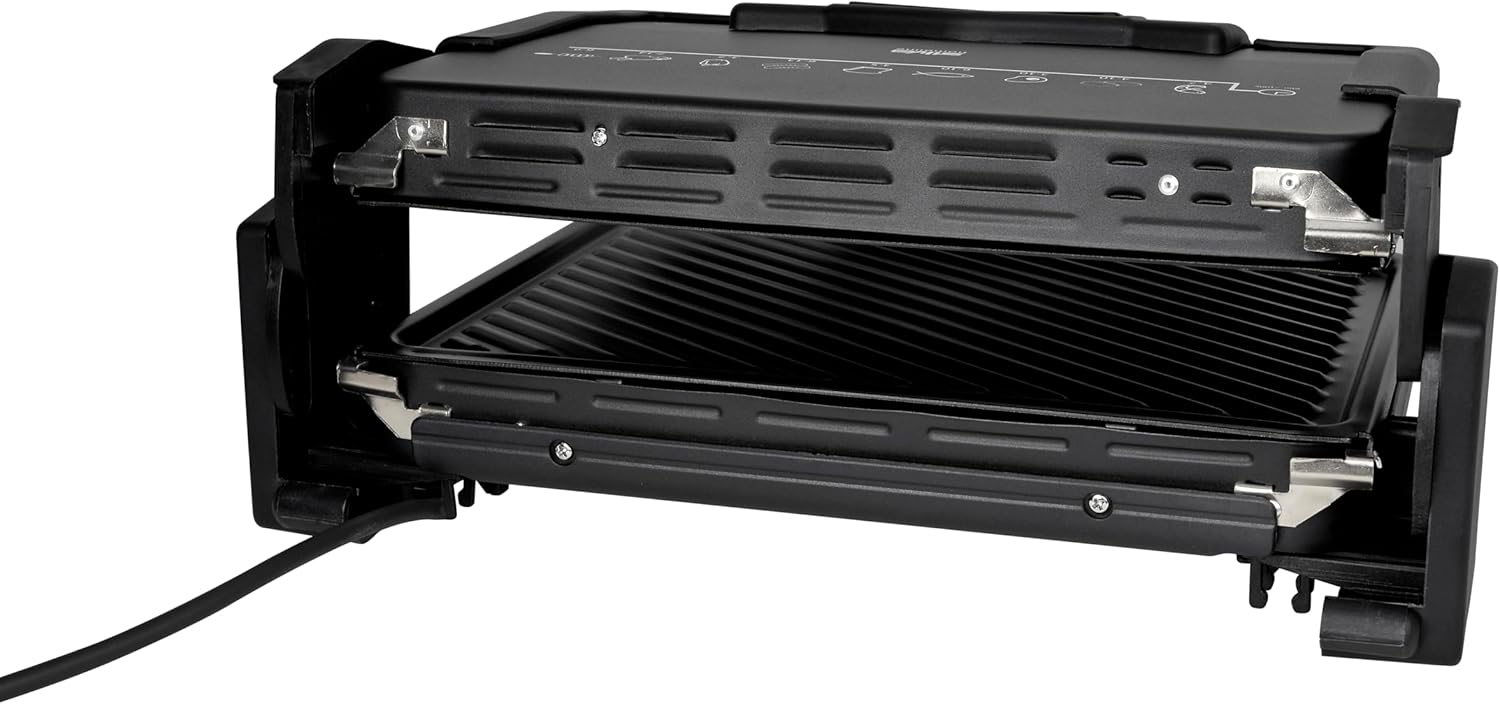 Незалепващите и подвижни плочи за грил на Silva Homeline KG 2410 правят почистването след печене лесно. Без залепване, без стрес - просто я свалете, сложете я в съдомиялната машина и сте готови. Каналът за оттичане на мазнините гарантира, че излишната мазнина се улавя, което не само улеснява почистването, но и допринася за по-здравословно печене на грил.